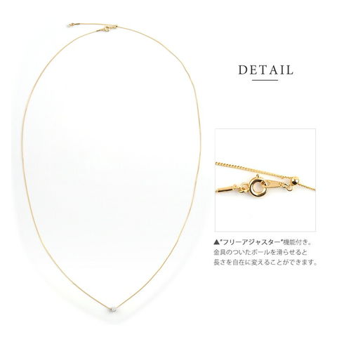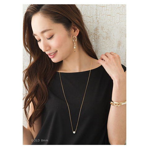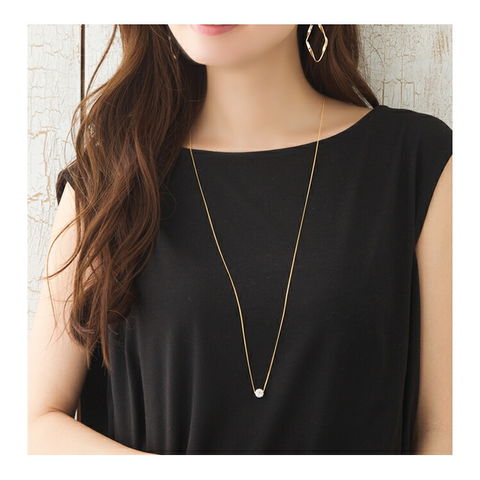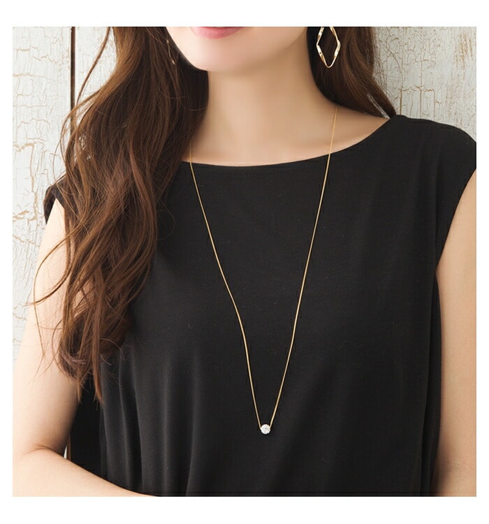 動くたびに胸元できらめくから、一粒でもエレガントな存在感を放つアイテムです。