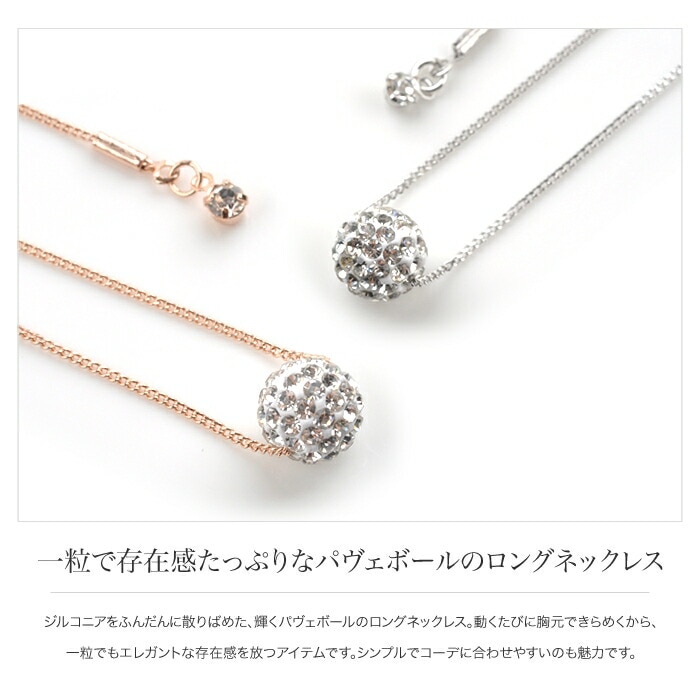 ジルコニアをふんだんに散りばめた、輝くパヴェボールのロングネックレス。