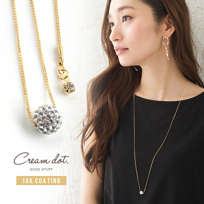 ネックレス レディース ロング パヴェ ペンダント ジルコニア 重ねづけ チェーン 定番 ジュエリー レディース cream dot ゆうパケット [ゴールド_8mmタイプ]