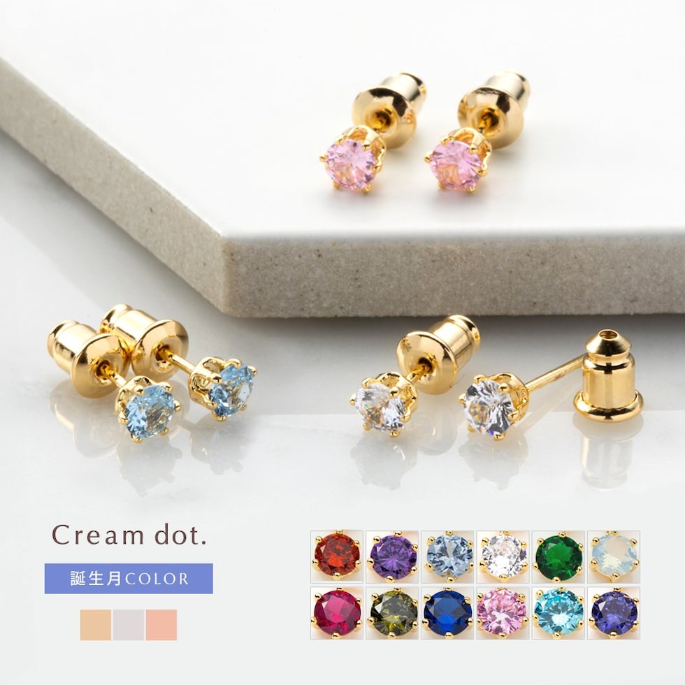 ピアス レディース 誕生月カラー 誕生月 誕生色 スタッド キュービックジルコニア 一粒ビジュー cream dot ゆうパケット [5月_ピンクゴールド]
