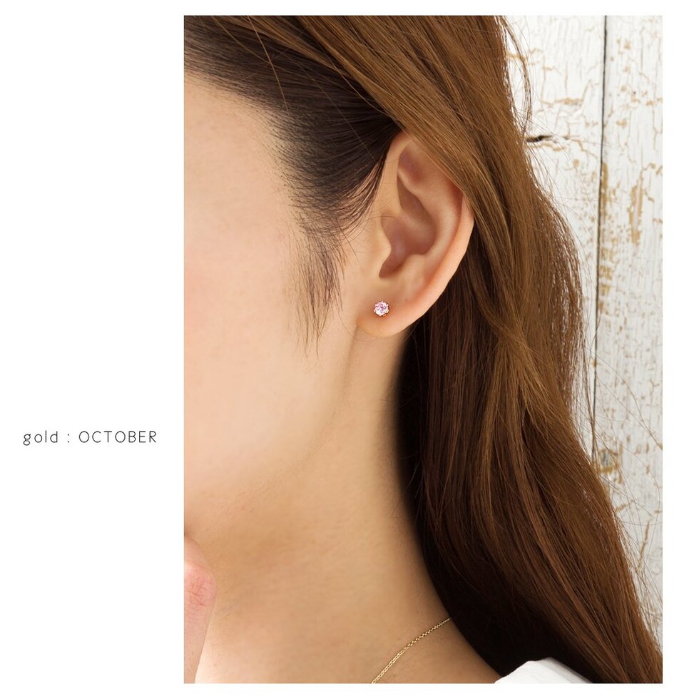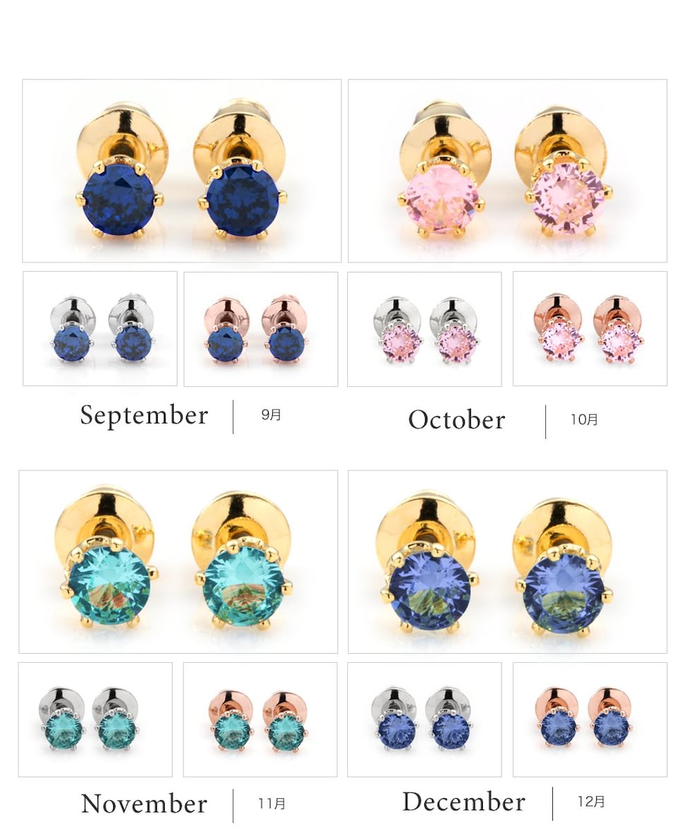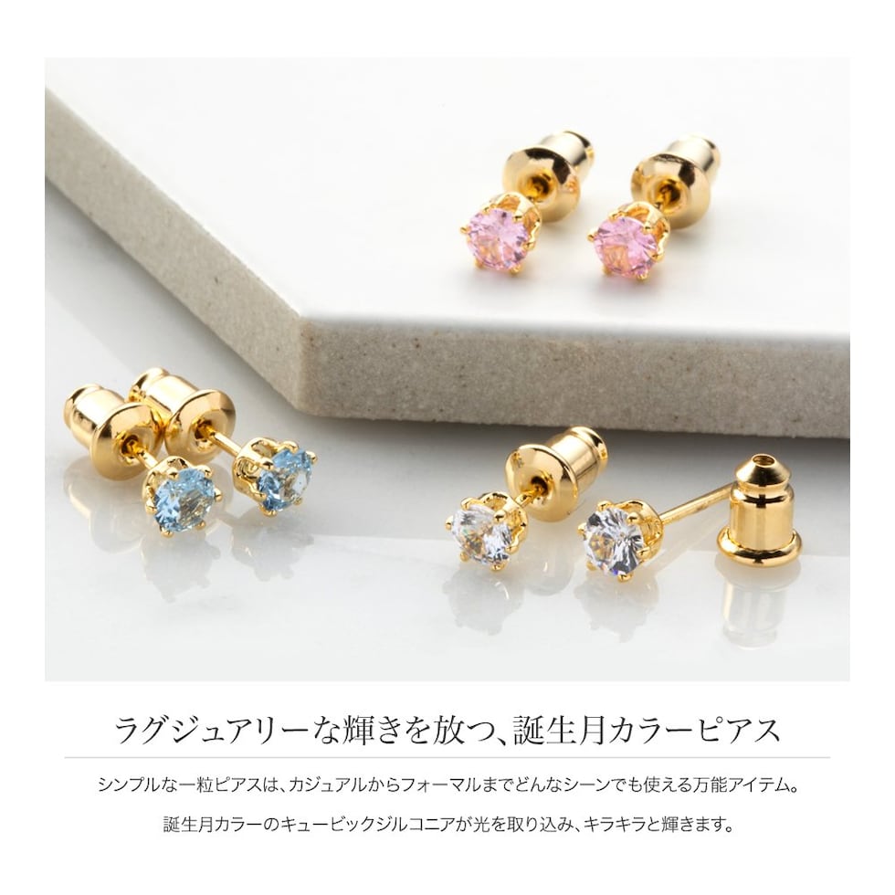 シンプルな一粒ピアスは、カジュアルからフォーマルまでどんなシーンでも使える万能アイテム。誕生月カラーのキュービックジルコニアが光を取り込み、キラキラと輝きます。