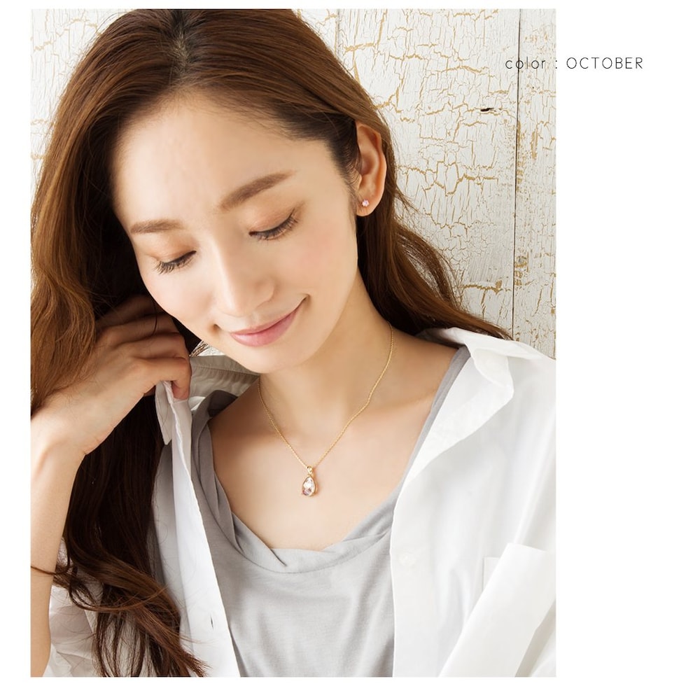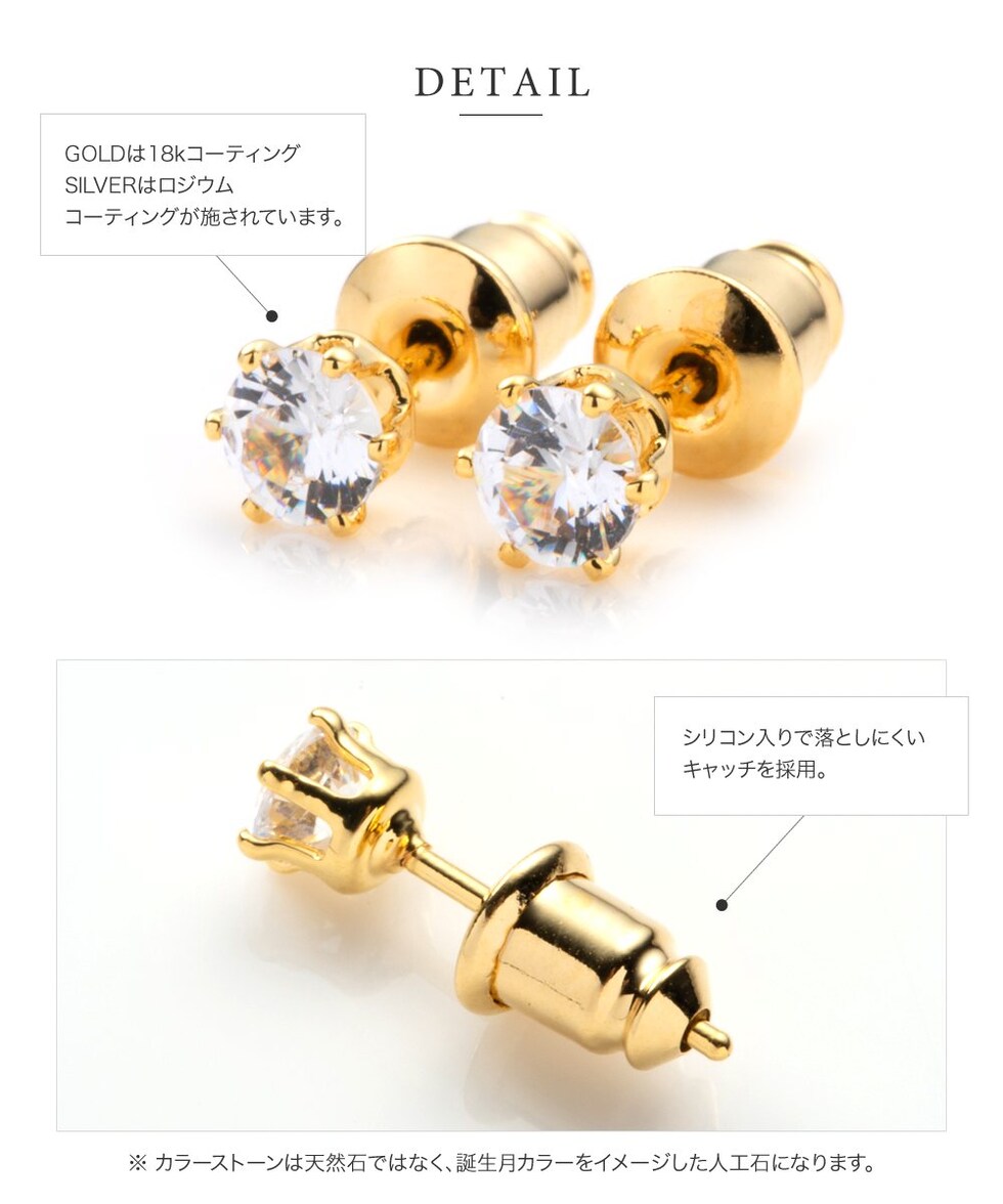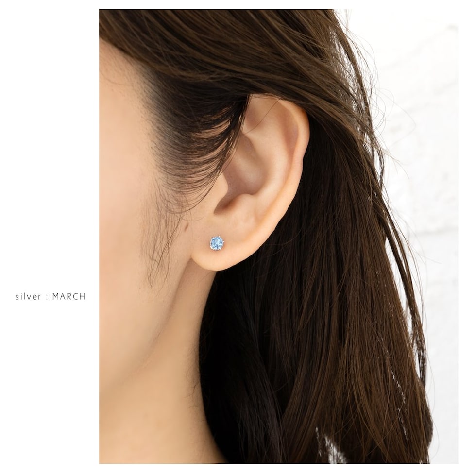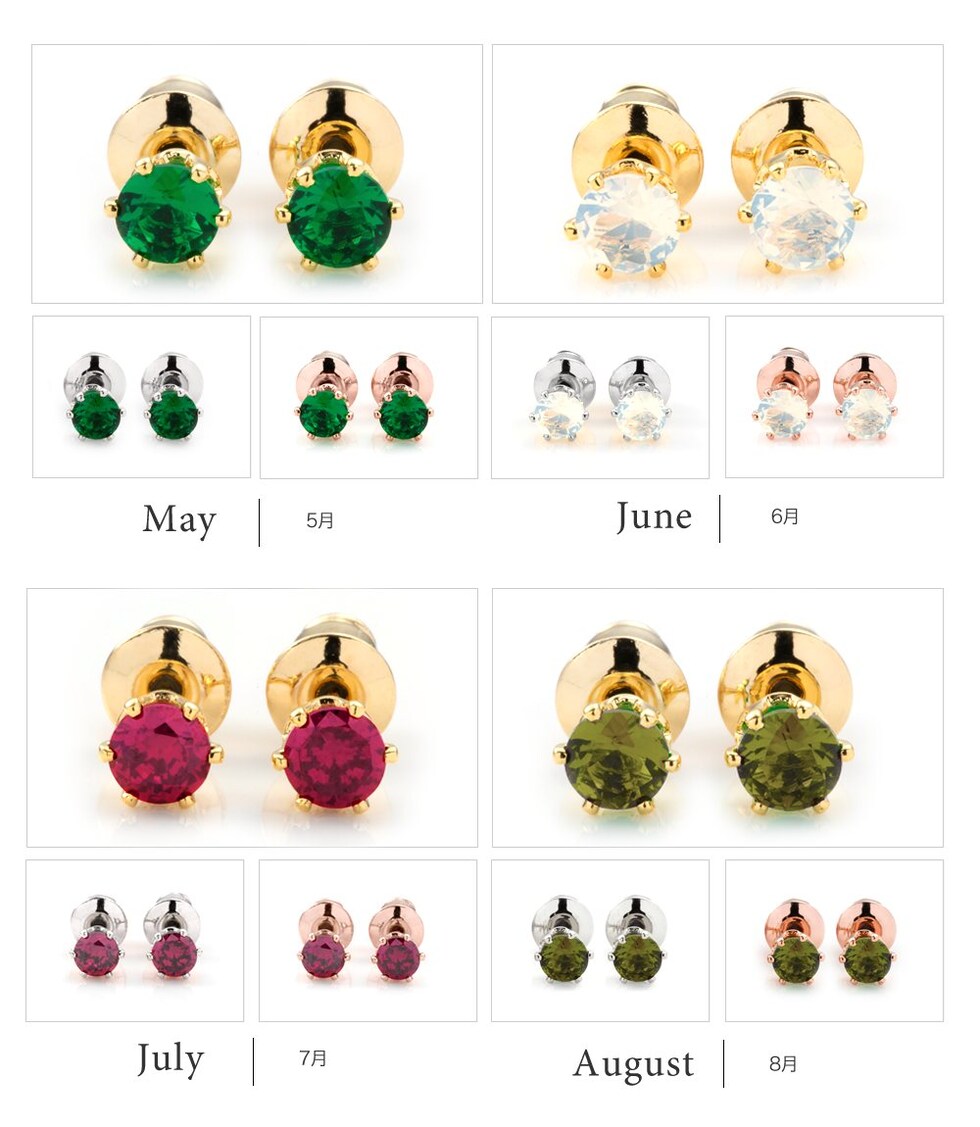 シンプルな一粒ピアスは、カジュアルからフォーマルまでどんなシーンでも使える万能アイテム。誕生月カラーのキュービックジルコニアが光を取り込み、キラキラと輝きます。