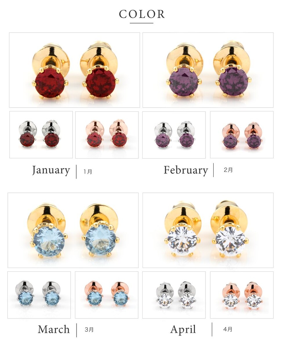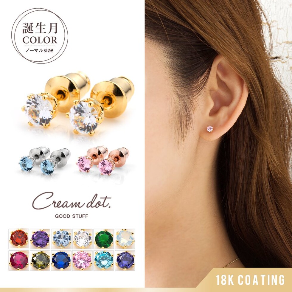 ピアス レディース 誕生月カラー 誕生月 誕生色 スタッド キュービックジルコニア 一粒ビジュー cream dot ゆうパケット [6月_ピンクゴールド]