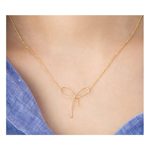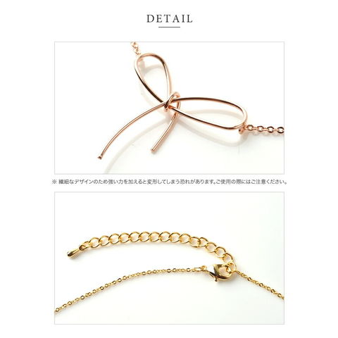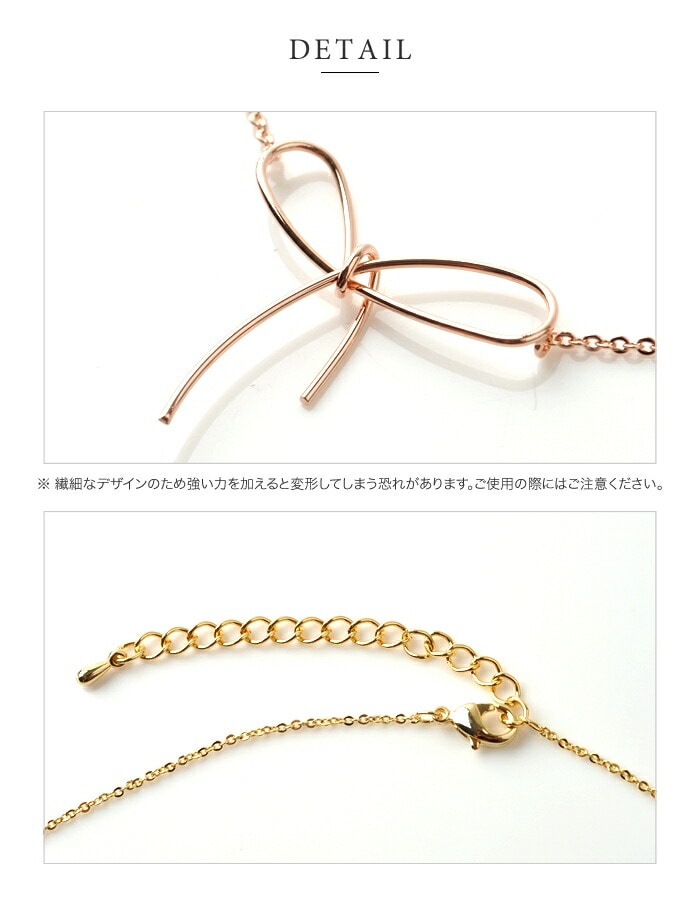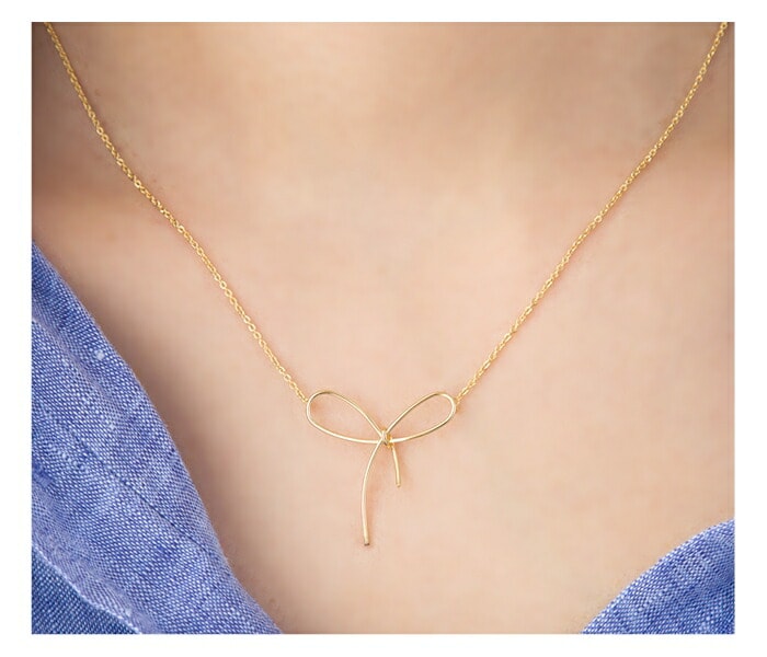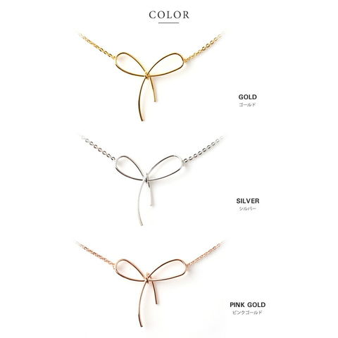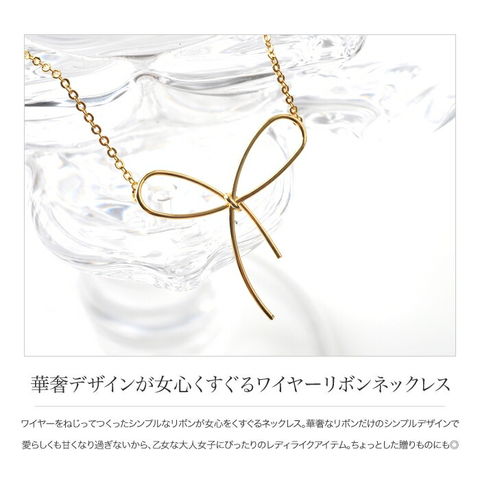 ワイヤーをねじってつくったシンプルなリボンが女心をくすぐるネックレス。