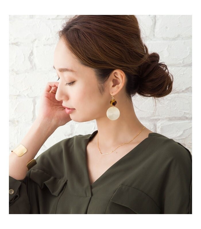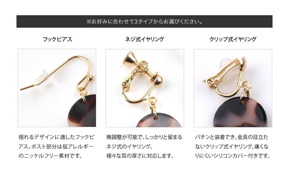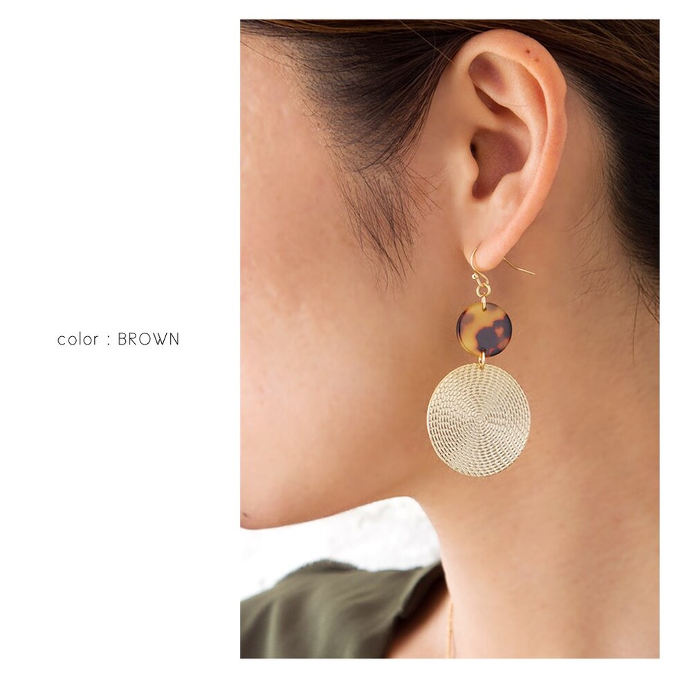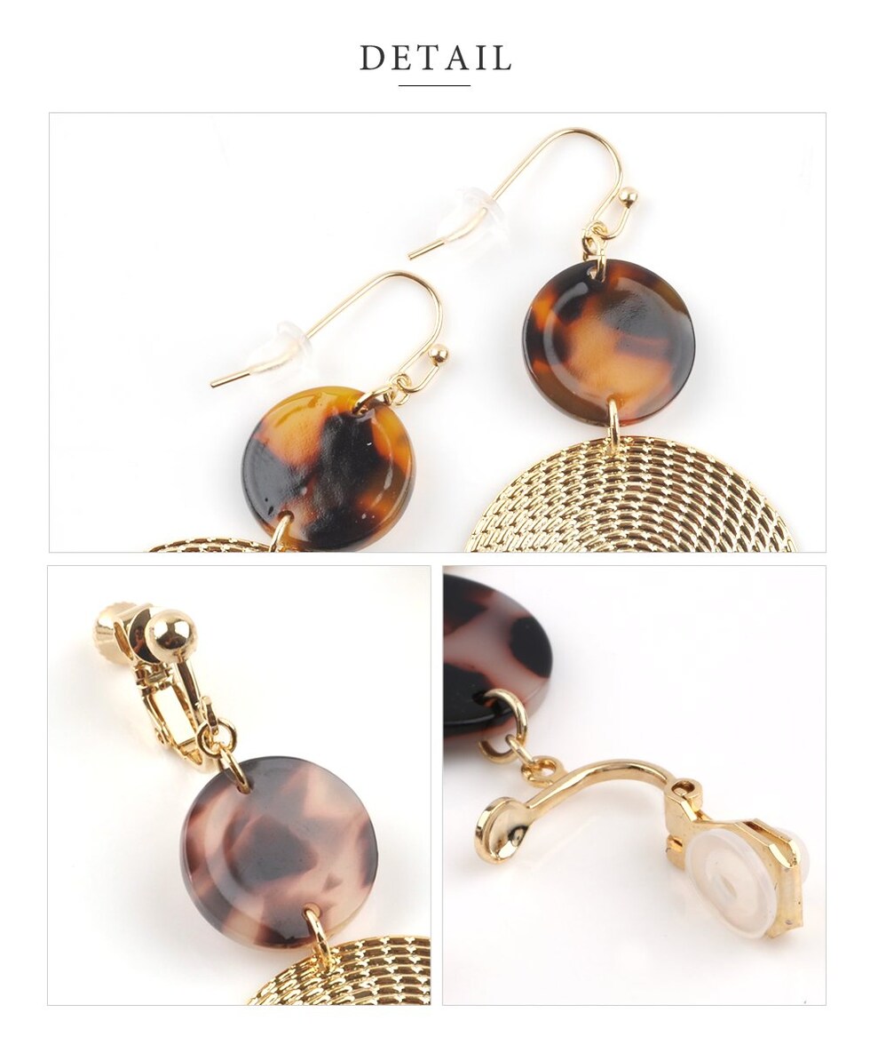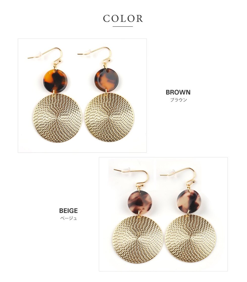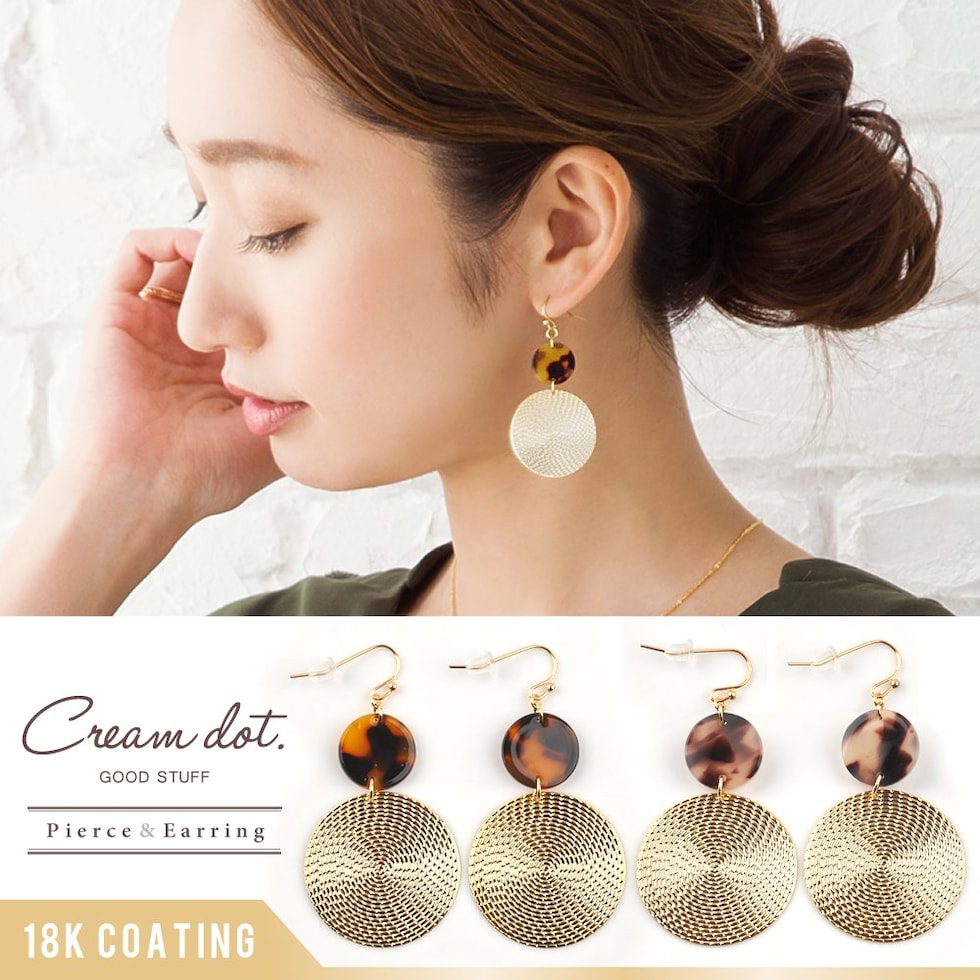 ピアス イヤリング レディース 揺れる ネジ式 クリップ式 シリコンキャッチ べっ甲風 べっこう風 cream dot ゆうパケット [ベージュ_ネジ式イヤリング]