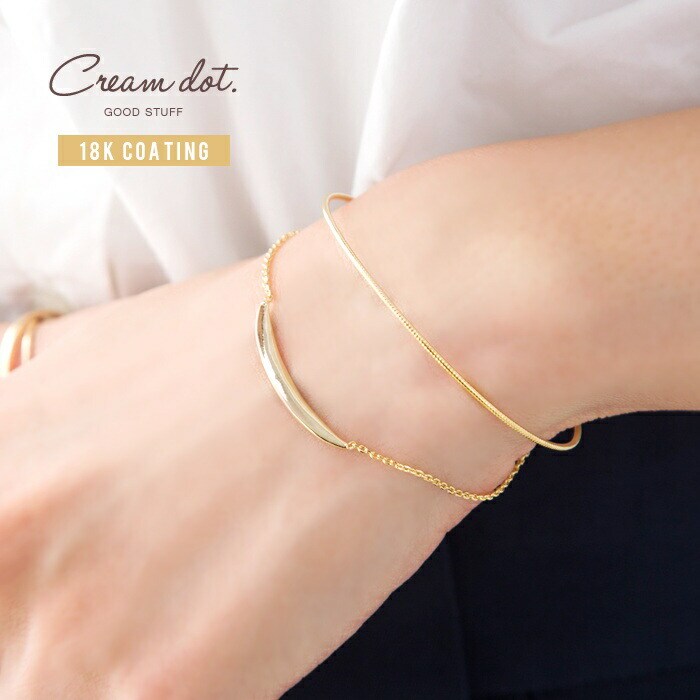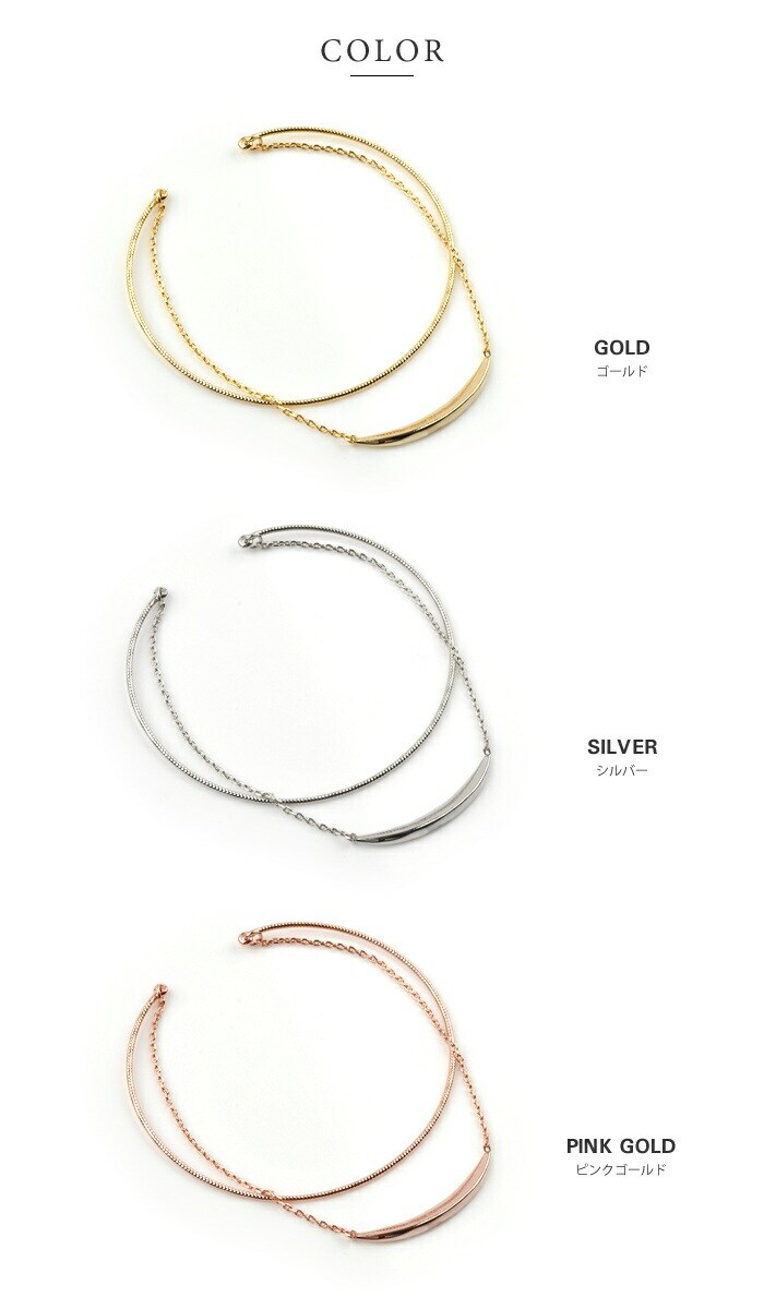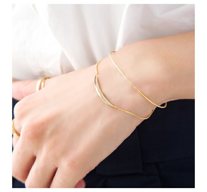 バングル レディース 重ね付け 2連 オープン 調節可 三日月風 三日月風モーチーフ メタル ラウンドバー アクセサリー cream dot ゆうパケット [ゴールド_ワンサイズ]