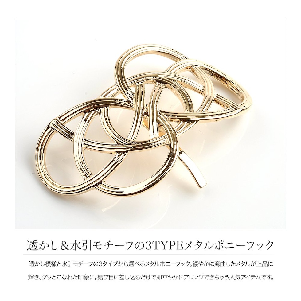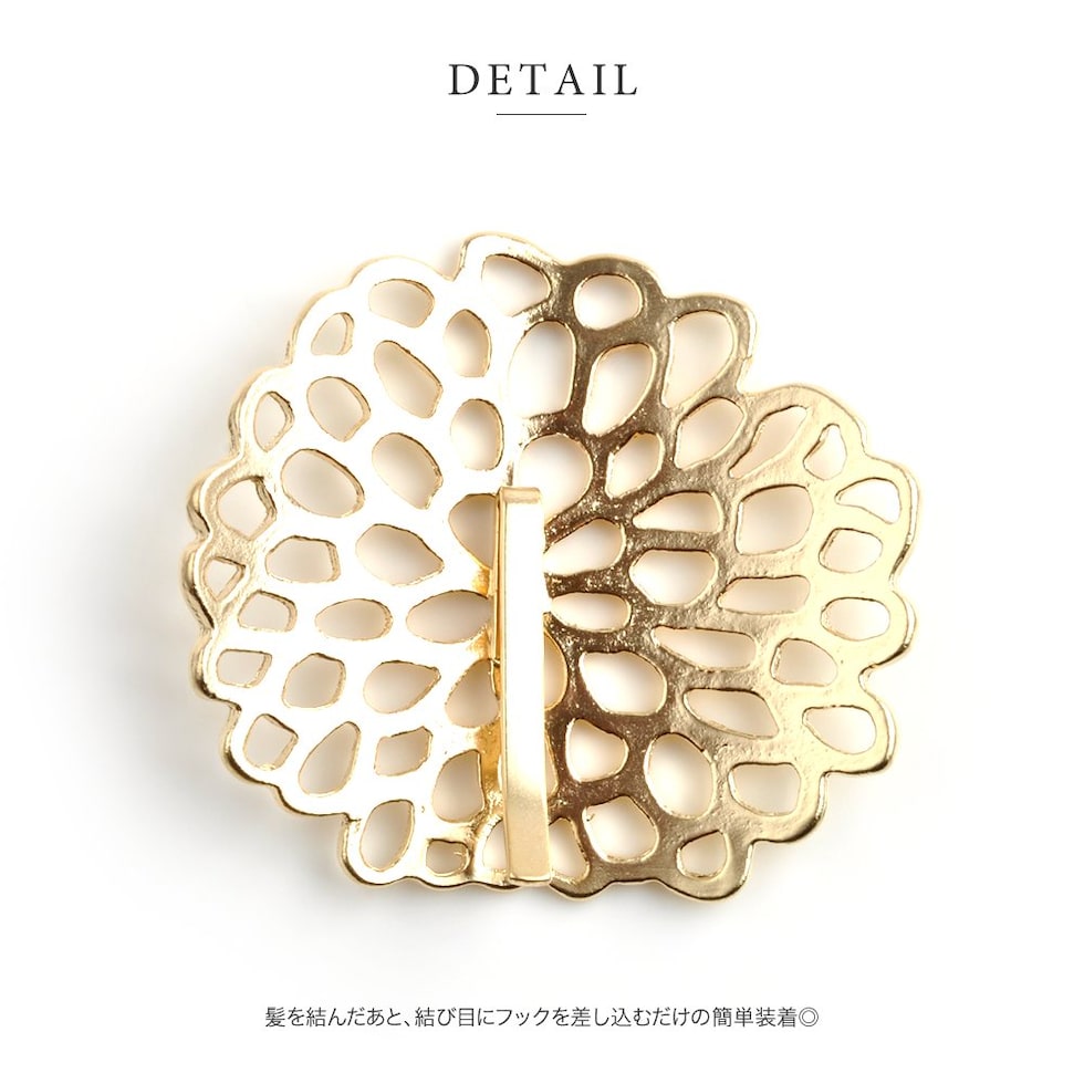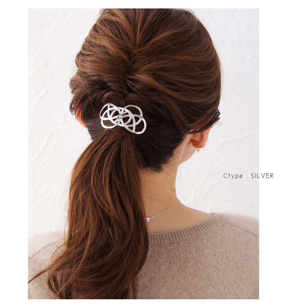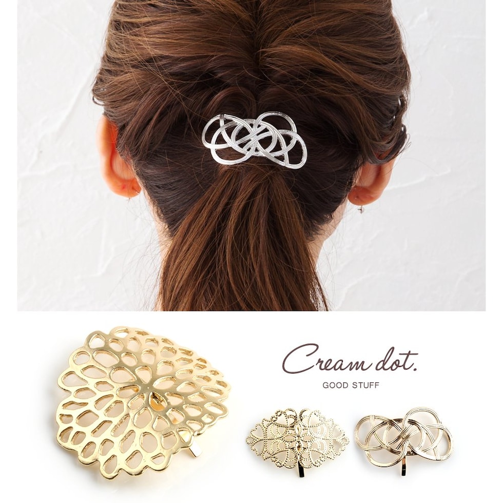 ヘアアクセサリー レディース 3タイプ ヘアカフ ポニーフック ヘアフック ワンタッチ まとめ髪 メタル 加工 モチーフ 透かし 水引 結び目隠し ヘアアクセ cream dot ゆうパケット [C:シルバー_ワンサイズ]