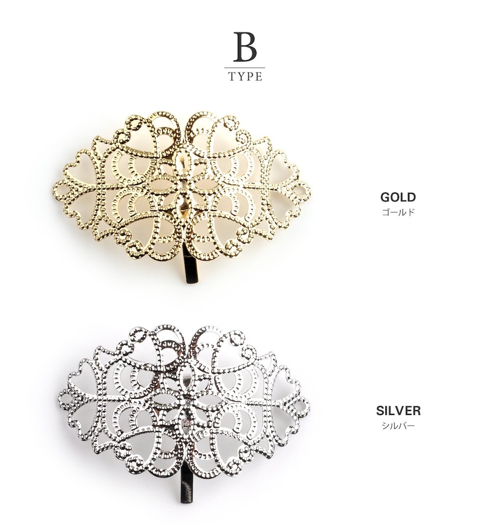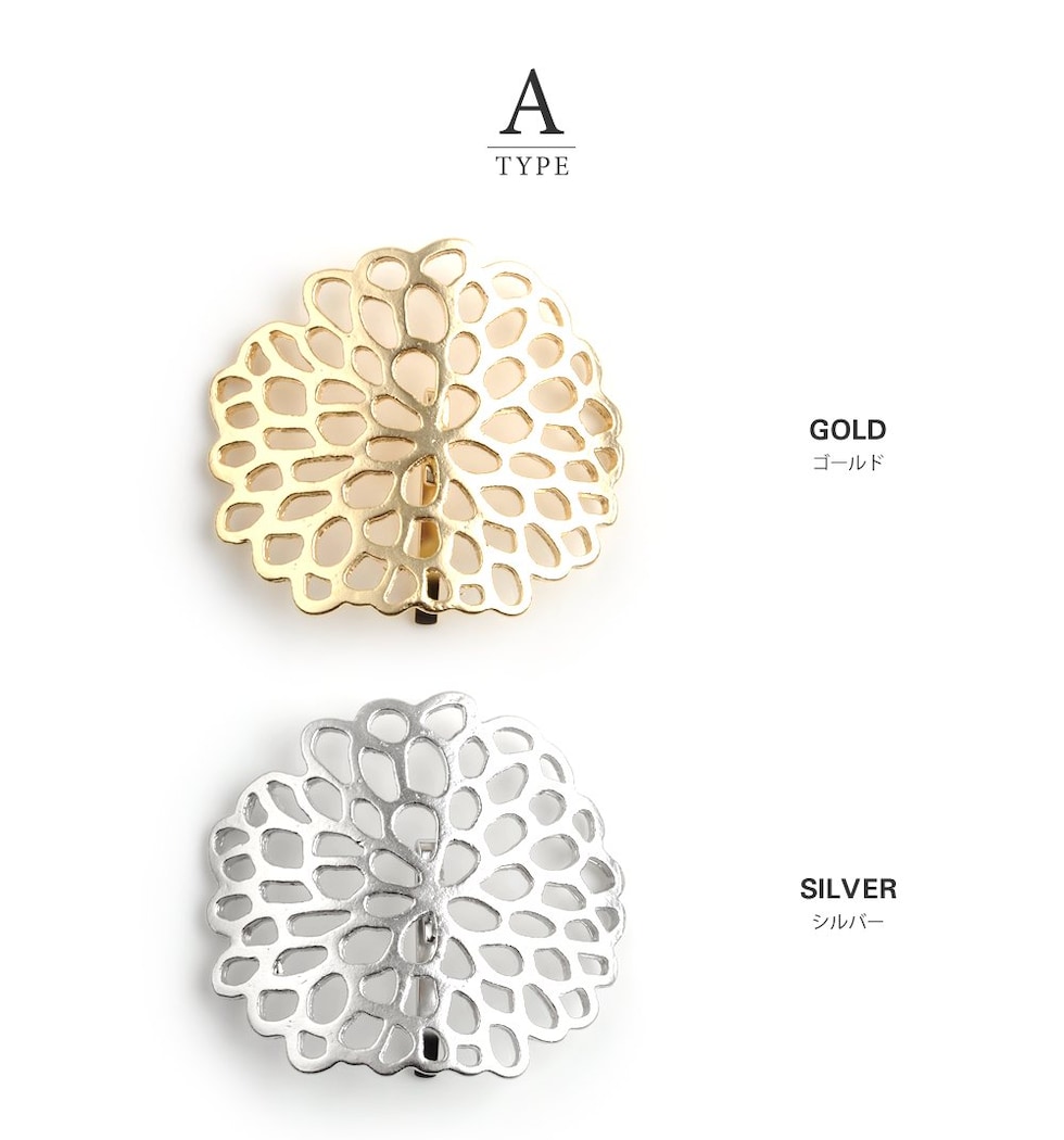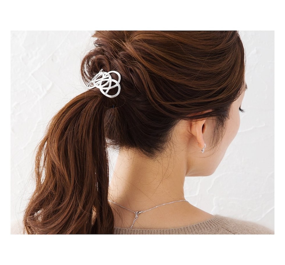 ヘアアクセサリー レディース 3タイプ ヘアカフ ポニーフック ヘアフック ワンタッチ まとめ髪 メタル 加工 モチーフ 透かし 水引 結び目隠し ヘアアクセ cream dot ゆうパケット [C:シルバー_ワンサイズ]