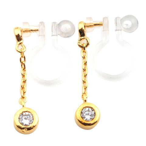 一粒ビジューがお顔周りで揺れて煌めくチェーンイヤリング/ピアス。