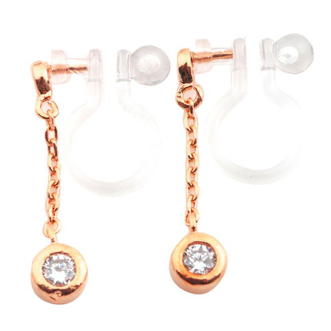 イヤリング ピアス レディース チェーン 一粒 ビジュー ロング 揺れる アクセサリー cream dot ゆうパケット [B:ピンクゴールド_イヤリング]