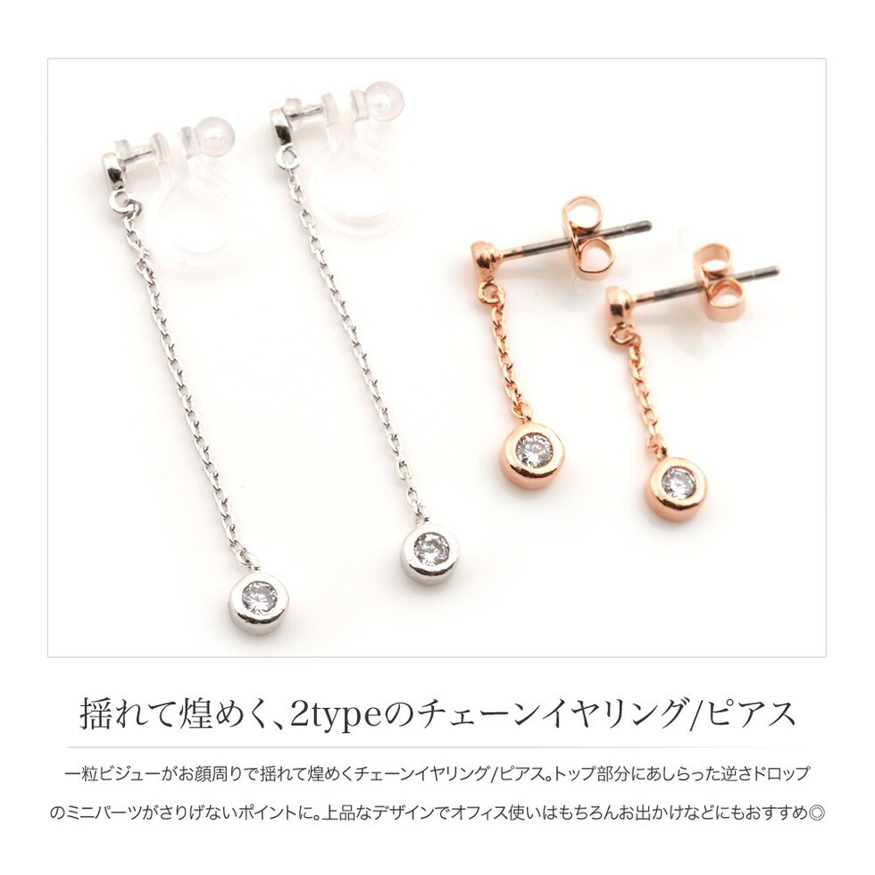 一粒ビジューがお顔周りで揺れて煌めくチェーンイヤリング/ピアス。