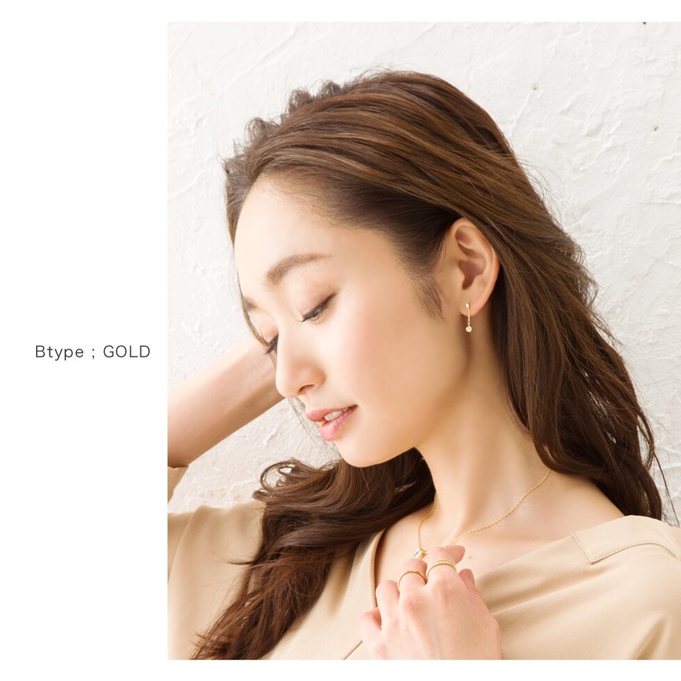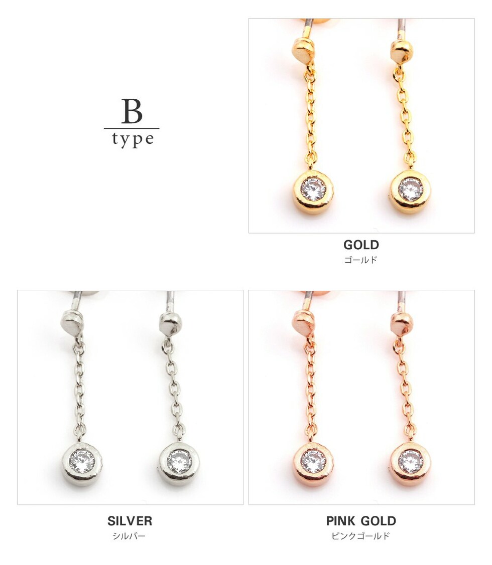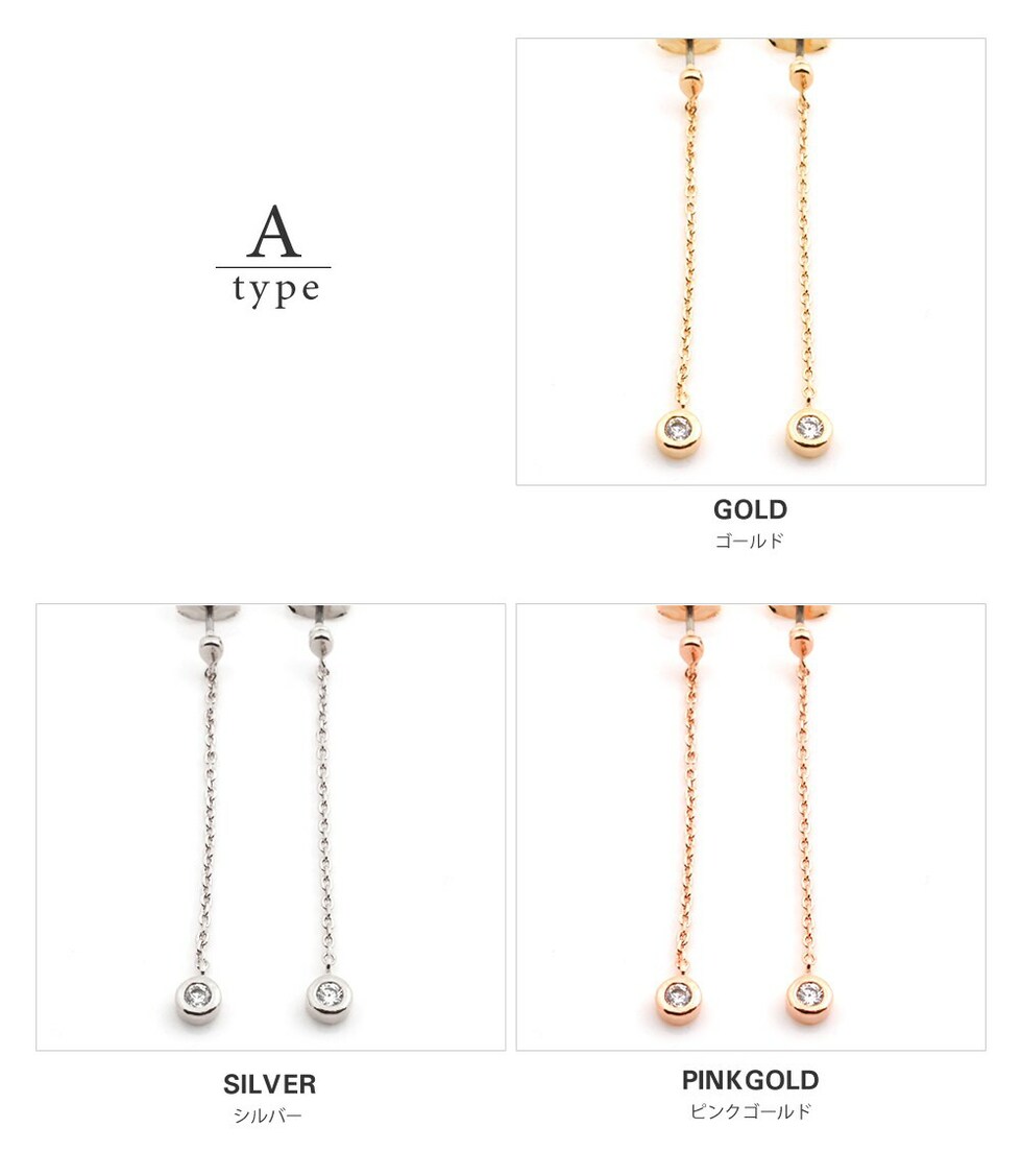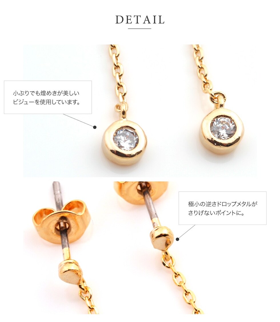 イヤリング ピアス レディース チェーン 一粒 ビジュー ロング 揺れる アクセサリー cream dot ゆうパケット [B:シルバー_イヤリング]