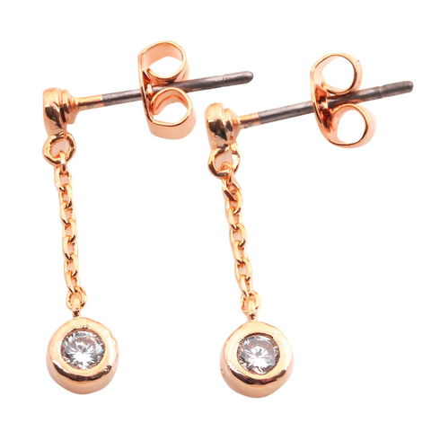 イヤリング ピアス レディース チェーン 一粒 ビジュー ロング 揺れる アクセサリー cream dot ゆうパケット [B:ピンクゴールド_ピアス]