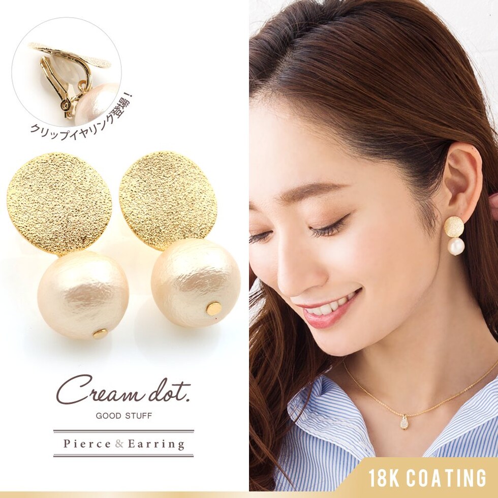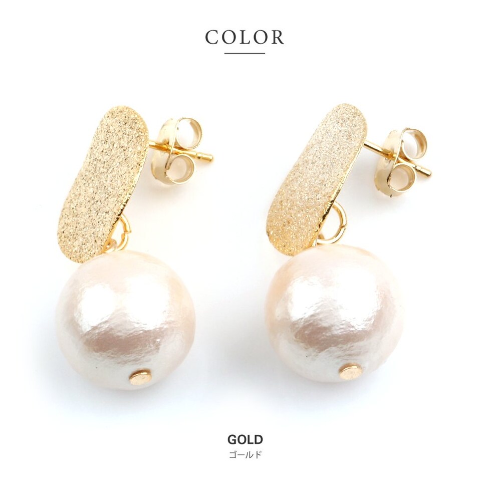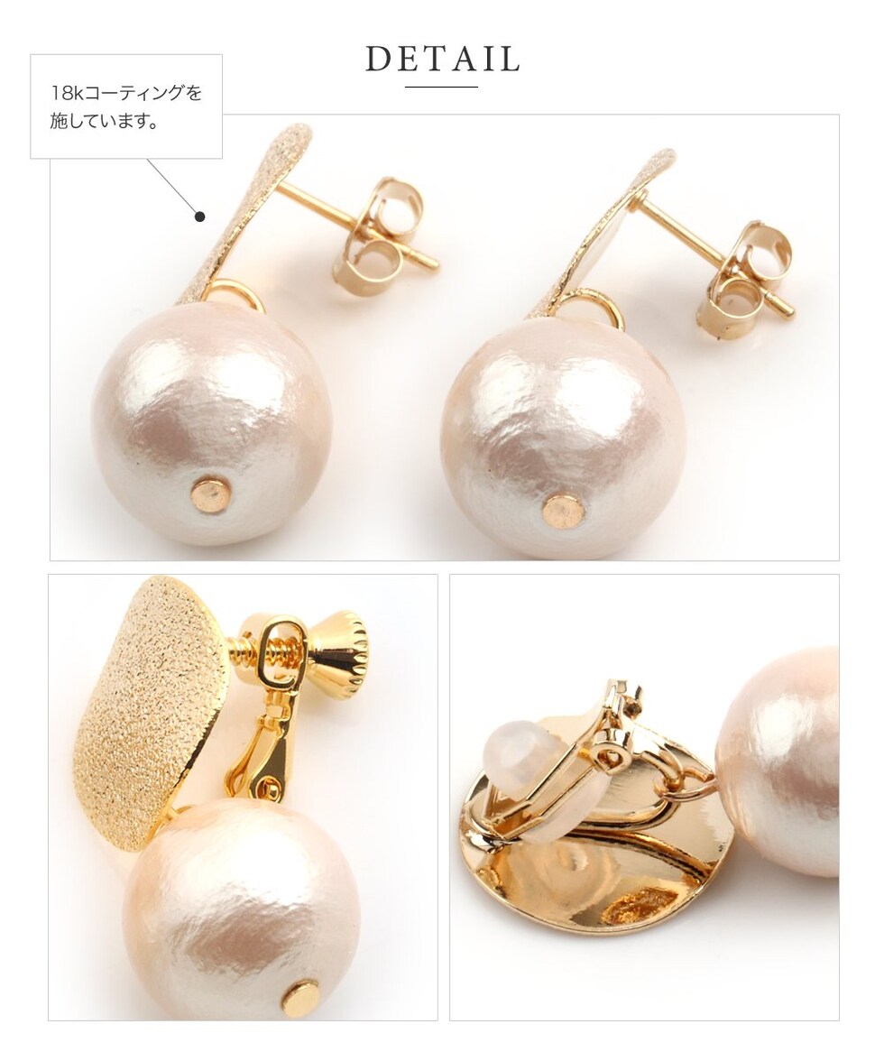 ピアス イヤリング レディース 揺れる ネジ式 クリップ式 シリコンキャッチ パール cream dot ゆうパケット [ゴールド_ネジ式イヤリング]