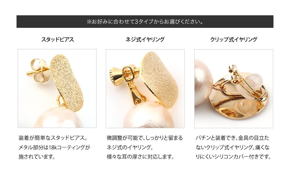 パールが耳元を華やかに演出し、デイリーからパーティーシーンまでお使いいただけます。