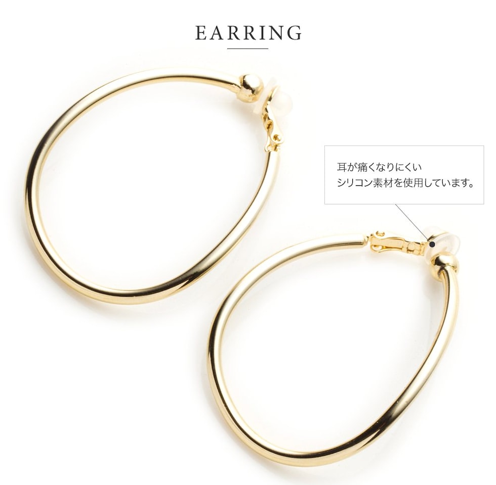 ピアス イヤリング レディース 大ぶり フープ キャッチレス シリコンカバー クリップ式 cream dot ゆうパケット [ゴールド_イヤリング]