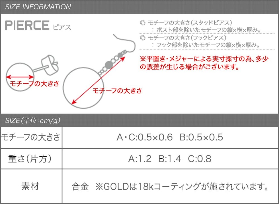 モチーフの大きさ A・C:0.5cm×0.6cm B:0.5cm×0.5cm