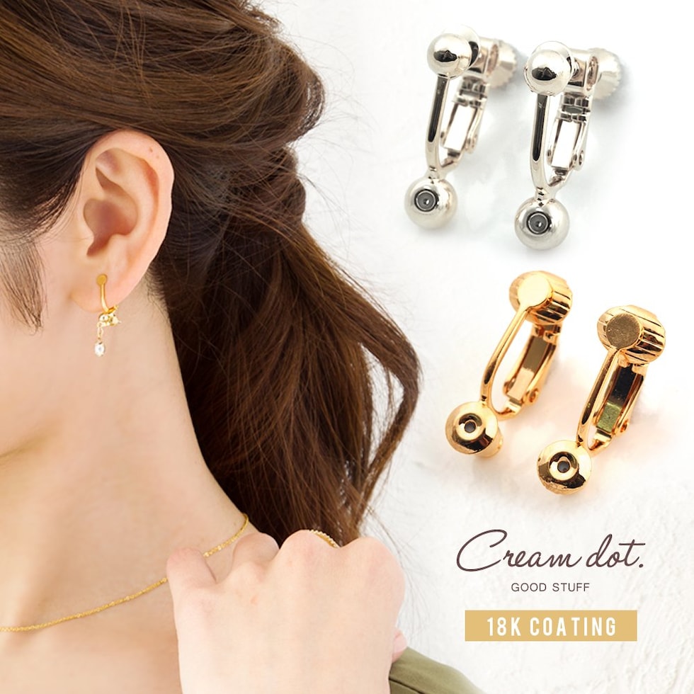 イヤリング ピアス レディース コンバーター クリップ式 ねじ式 2タイプ 3種類 アクセサリー cream dot ゆうパケット [B:シルバー_ワンサイズ]