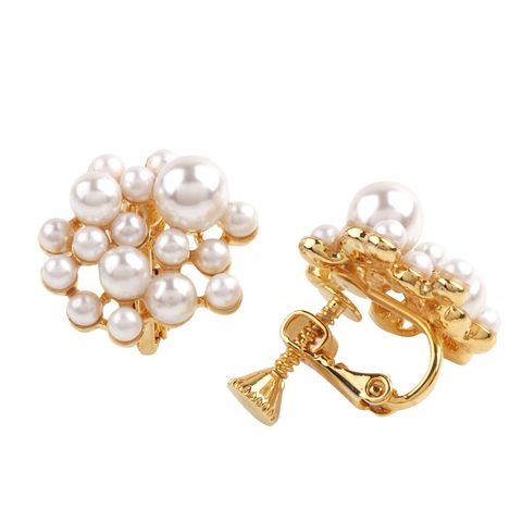 大小様々なパールをランダムに配置したデザインが華やかなパールピアス/イヤリング。小ぶりながら上品に煌めくパールがボリュームライクな耳元に。