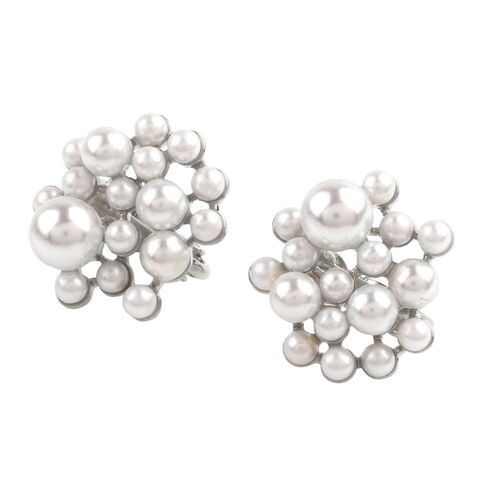 大小様々なパールをランダムに配置したデザインが華やかなパールピアス/イヤリング。小ぶりながら上品に煌めくパールがボリュームライクな耳元に。