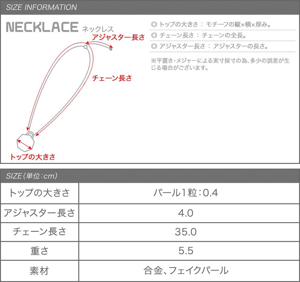 トップの大きさ パール1粒:0.4cm