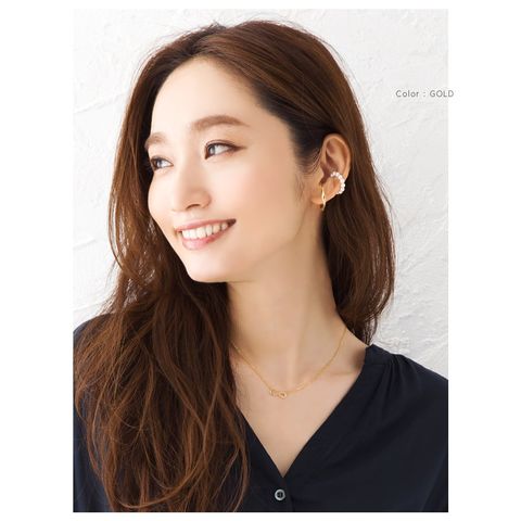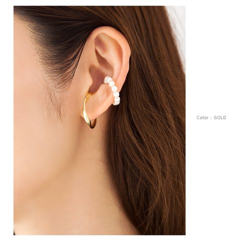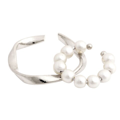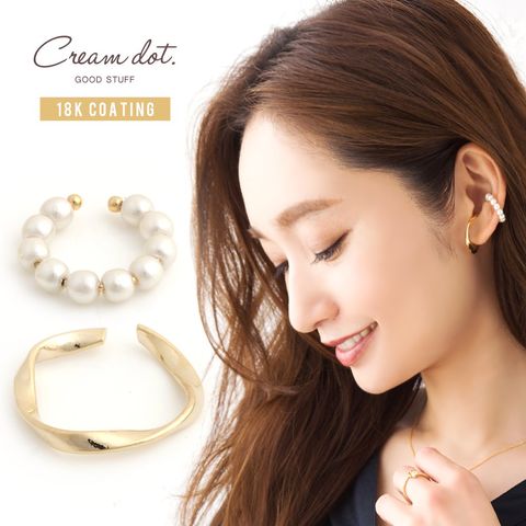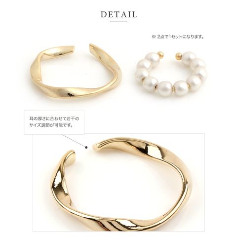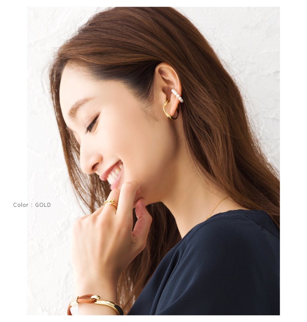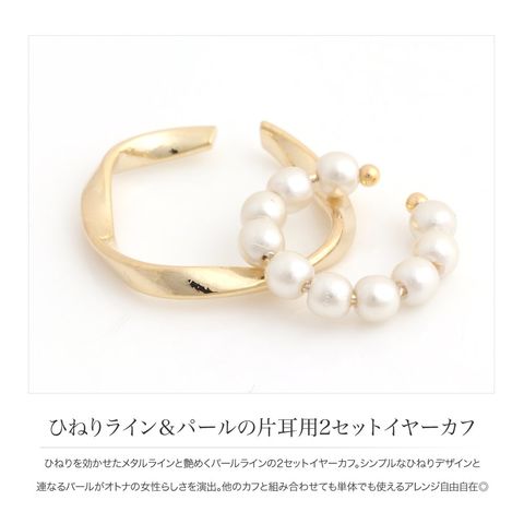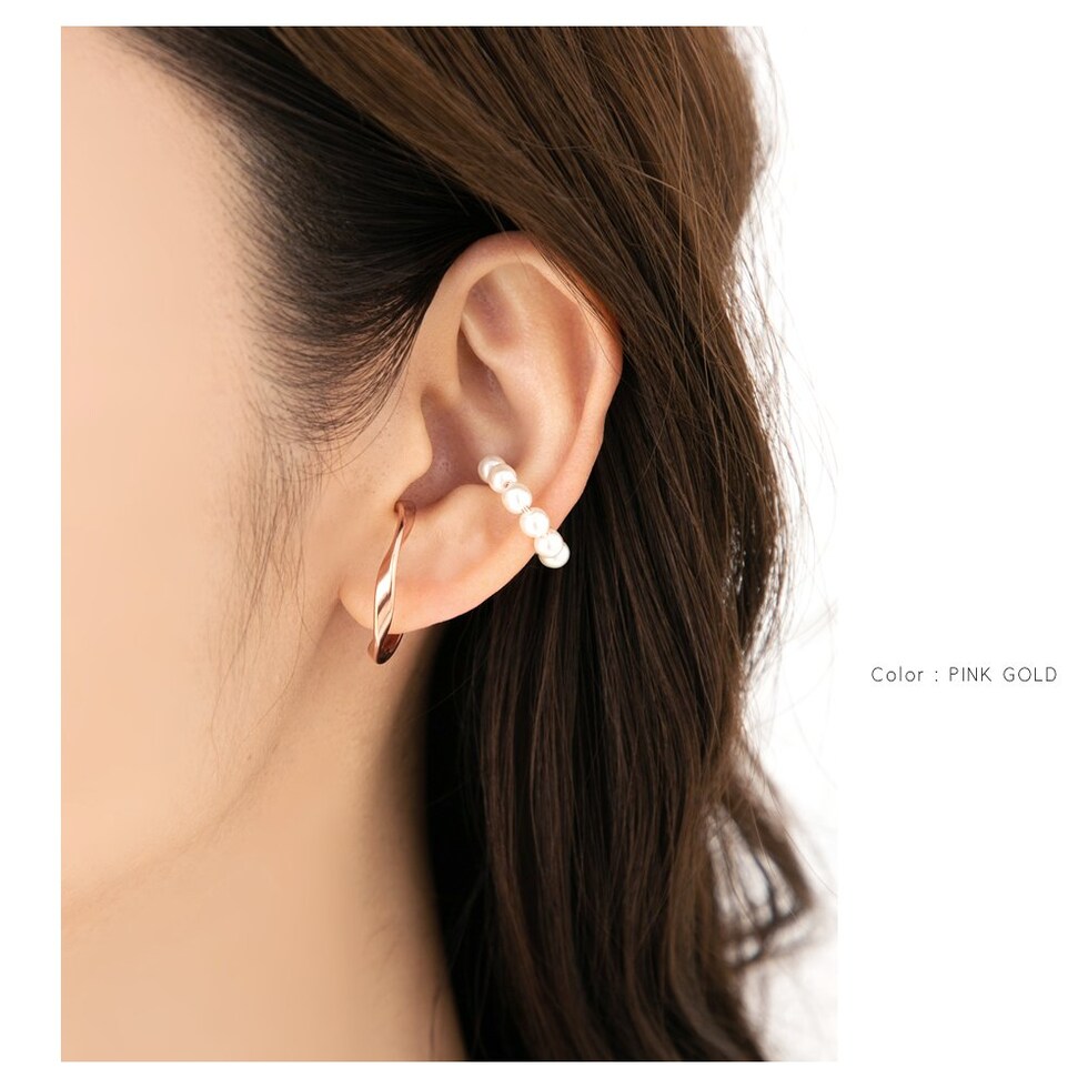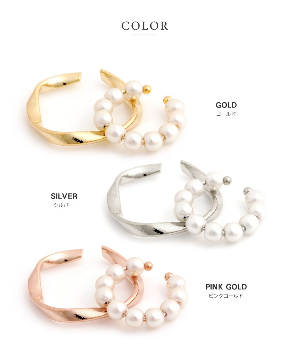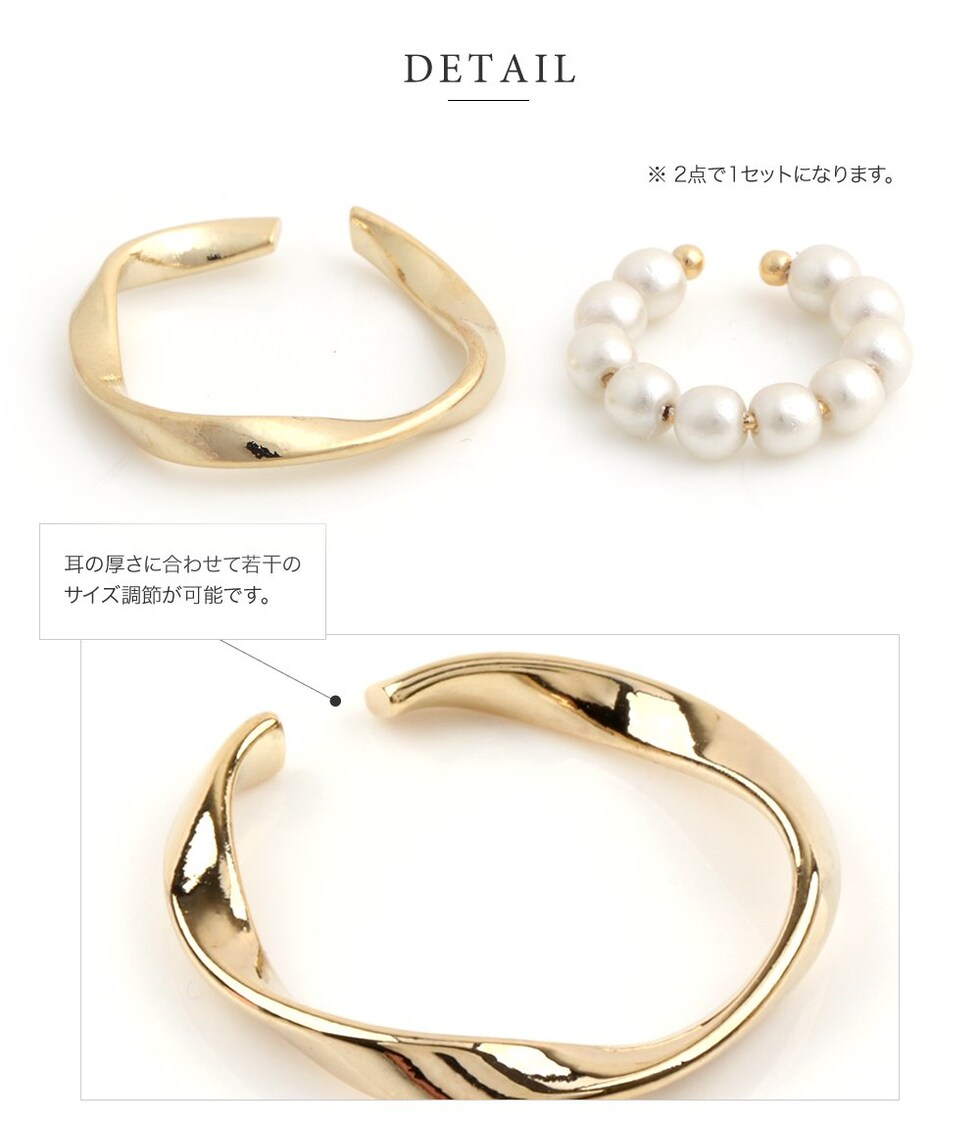 イヤーカフ レディース 2点セット イヤーカフ イヤカフ 片耳用 重ねづけ メタル パール cream dot ゆうパケット [シルバー_フリーサイズ]