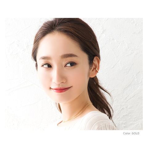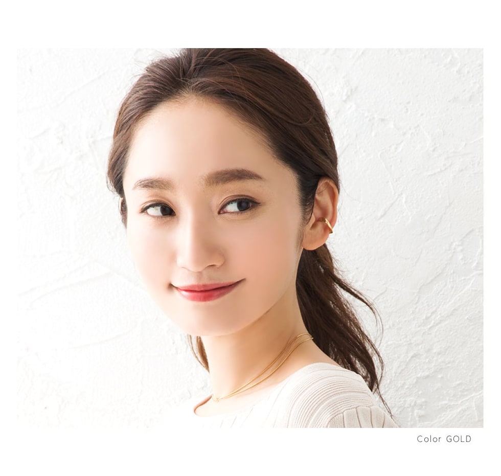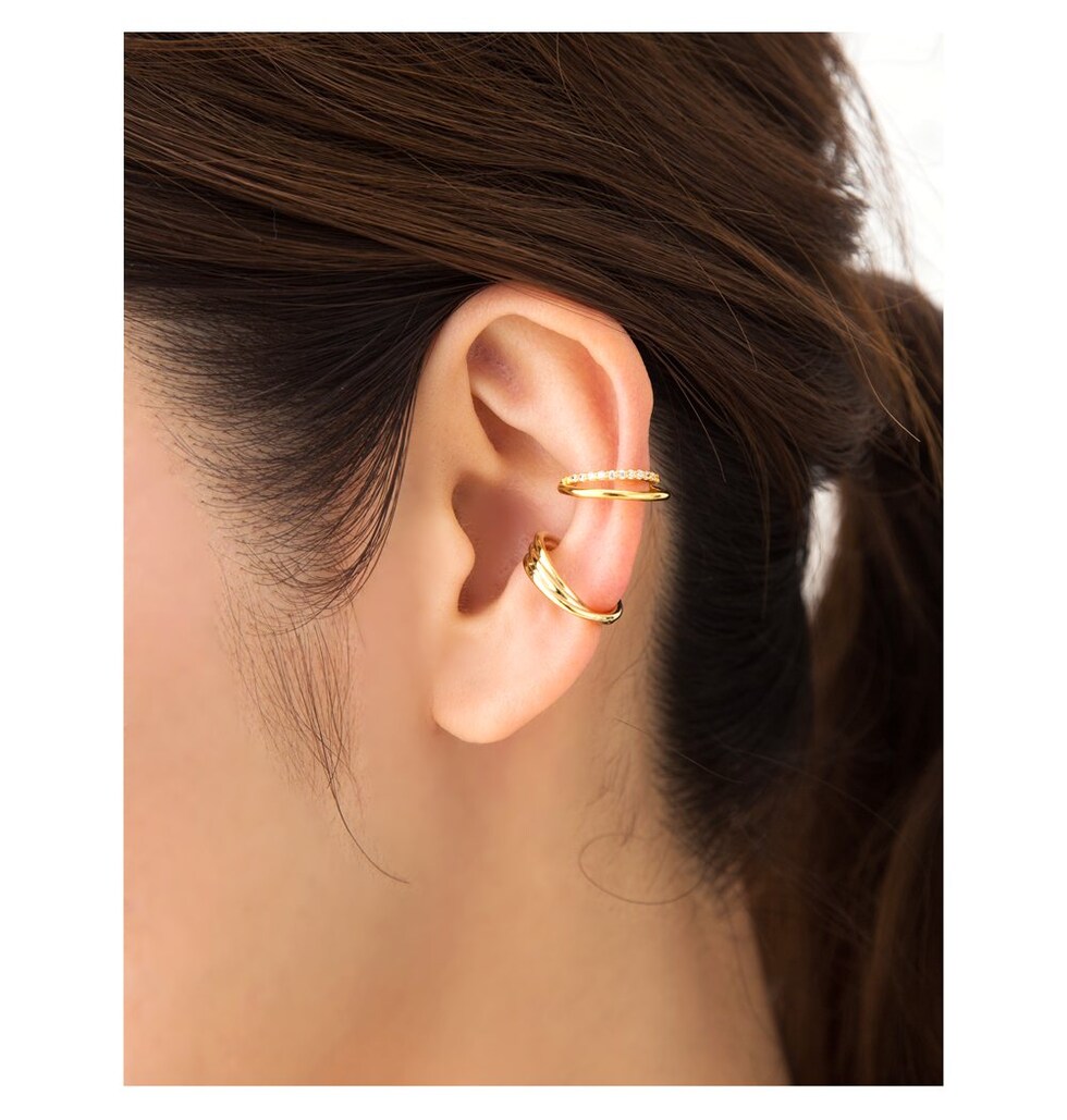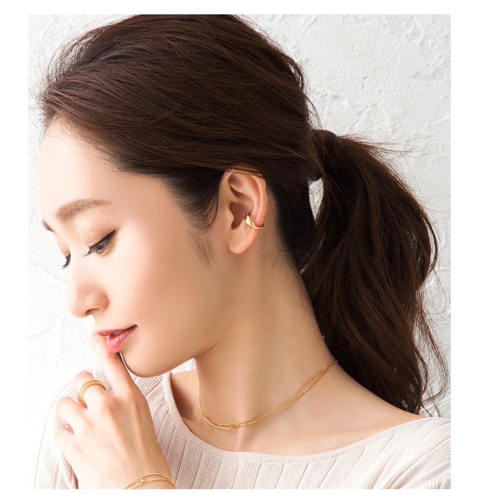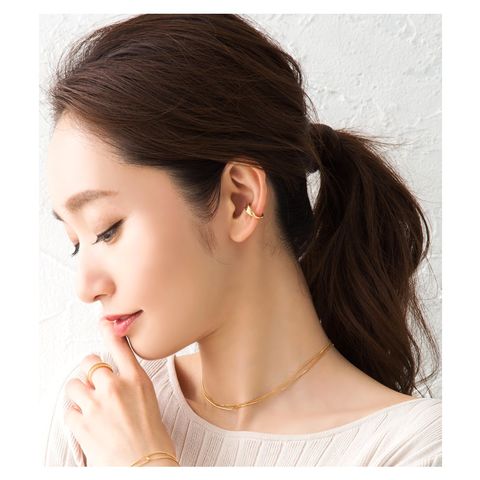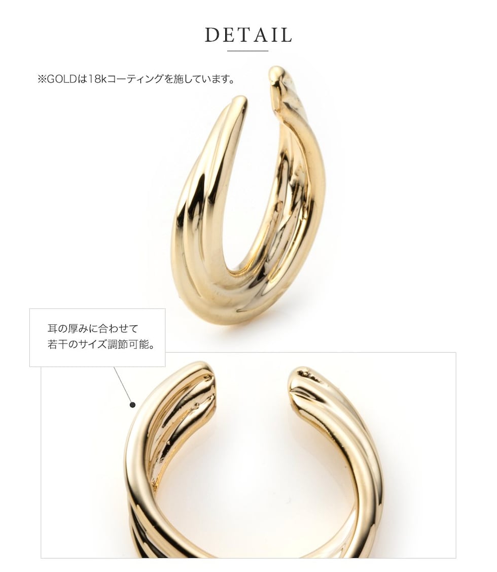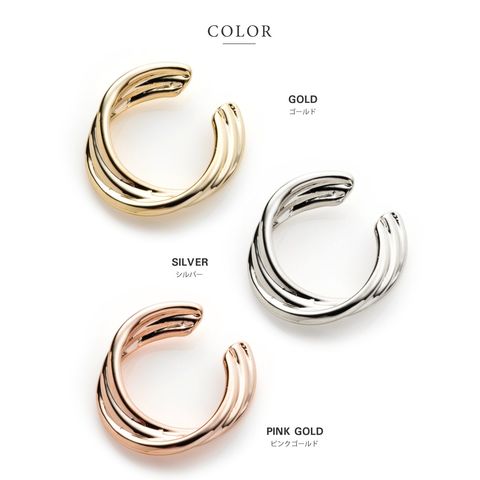 3連フープに緩やかにひねりを加えたデザインの片耳用メタルイヤ―カフ。