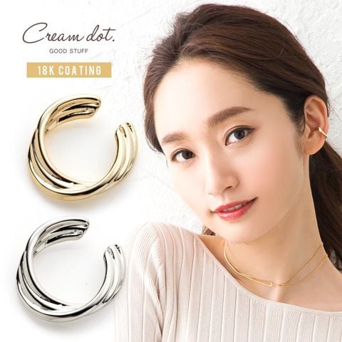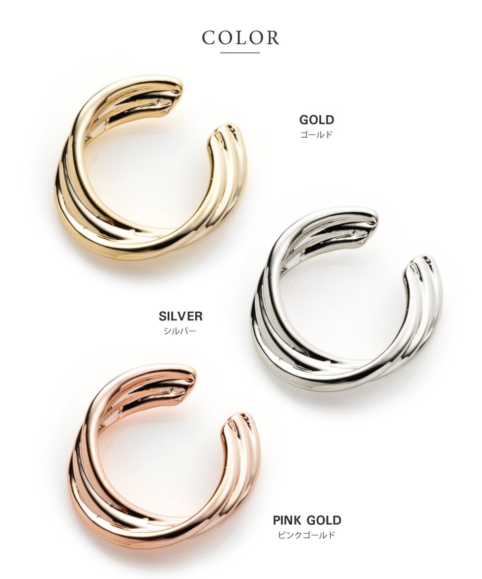 イヤーカフ レディース イヤカフ 片耳用 メタル 3連 リング 交わる 三重 3重 ひねり ツイスト cream dot ゆうパケット [ピンクゴールド_フリーサイズ]