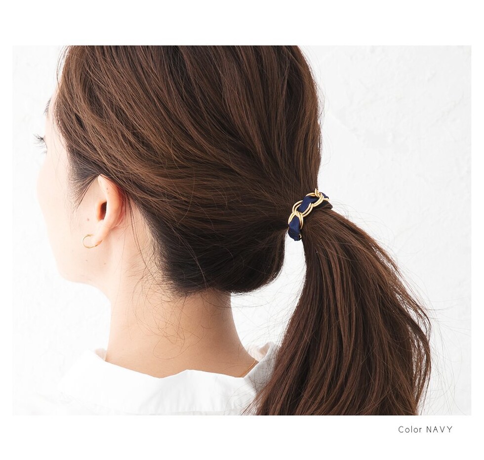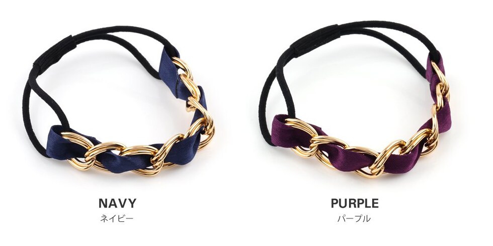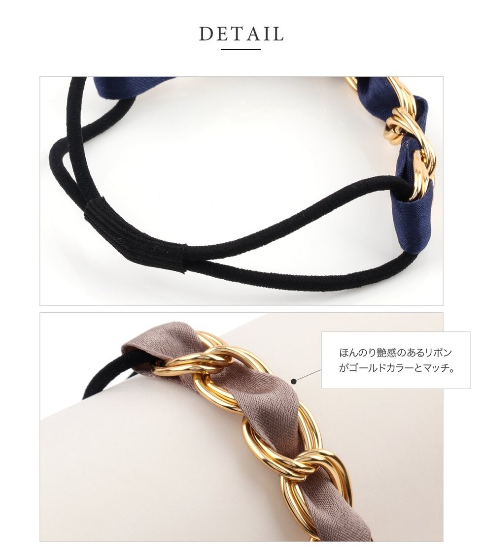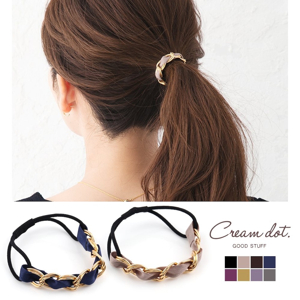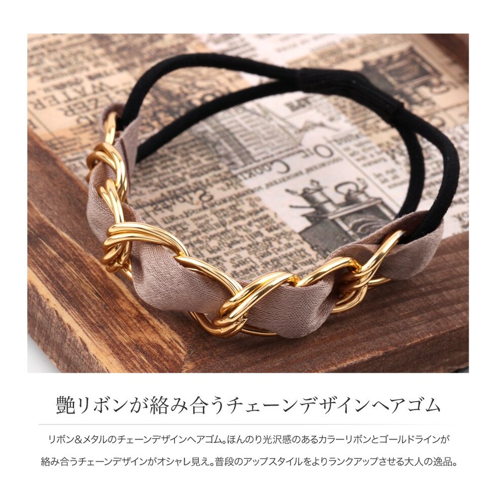 ヘアアクセサリー レディース ヘアゴム リボン メタル チェーンデザイン cream dot ゆうパケット [ラベンダー_ワンサイズ]