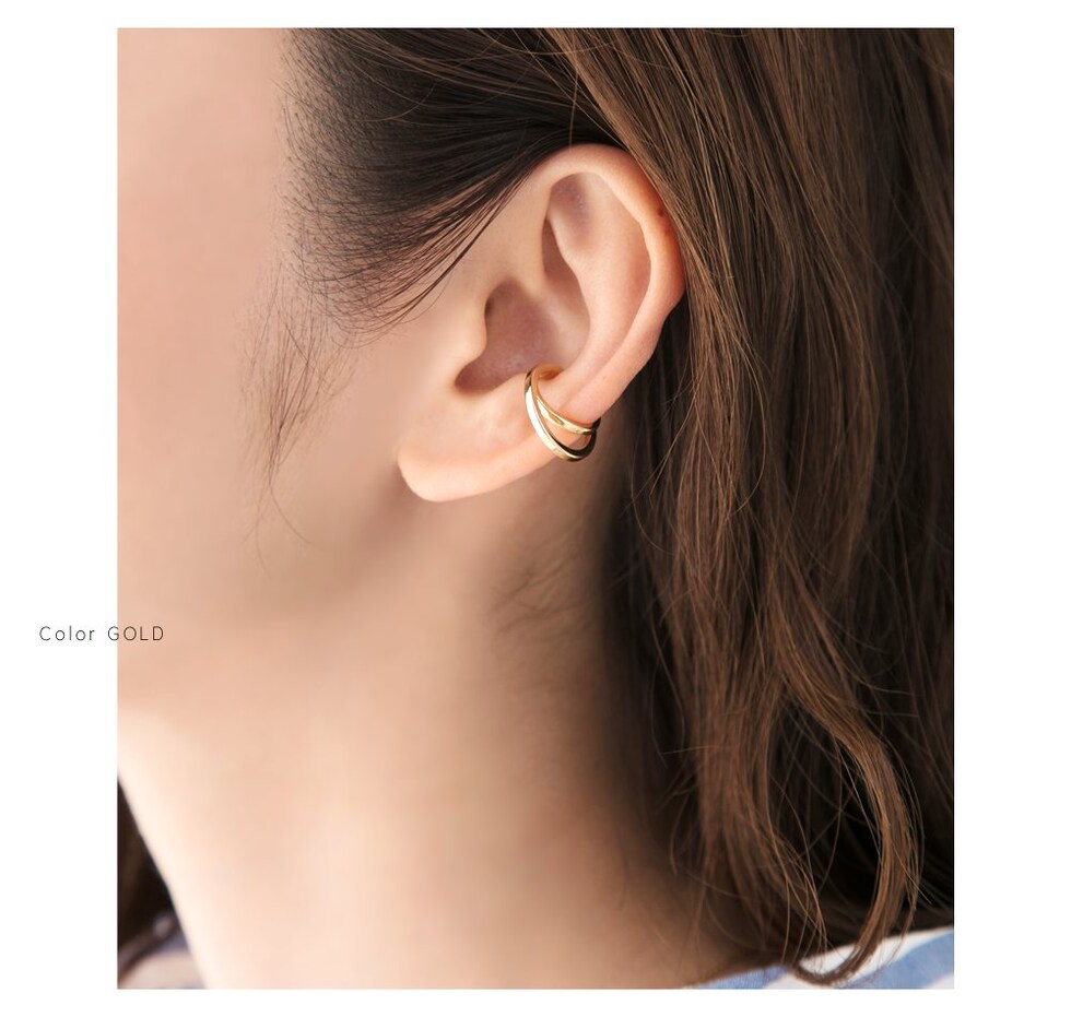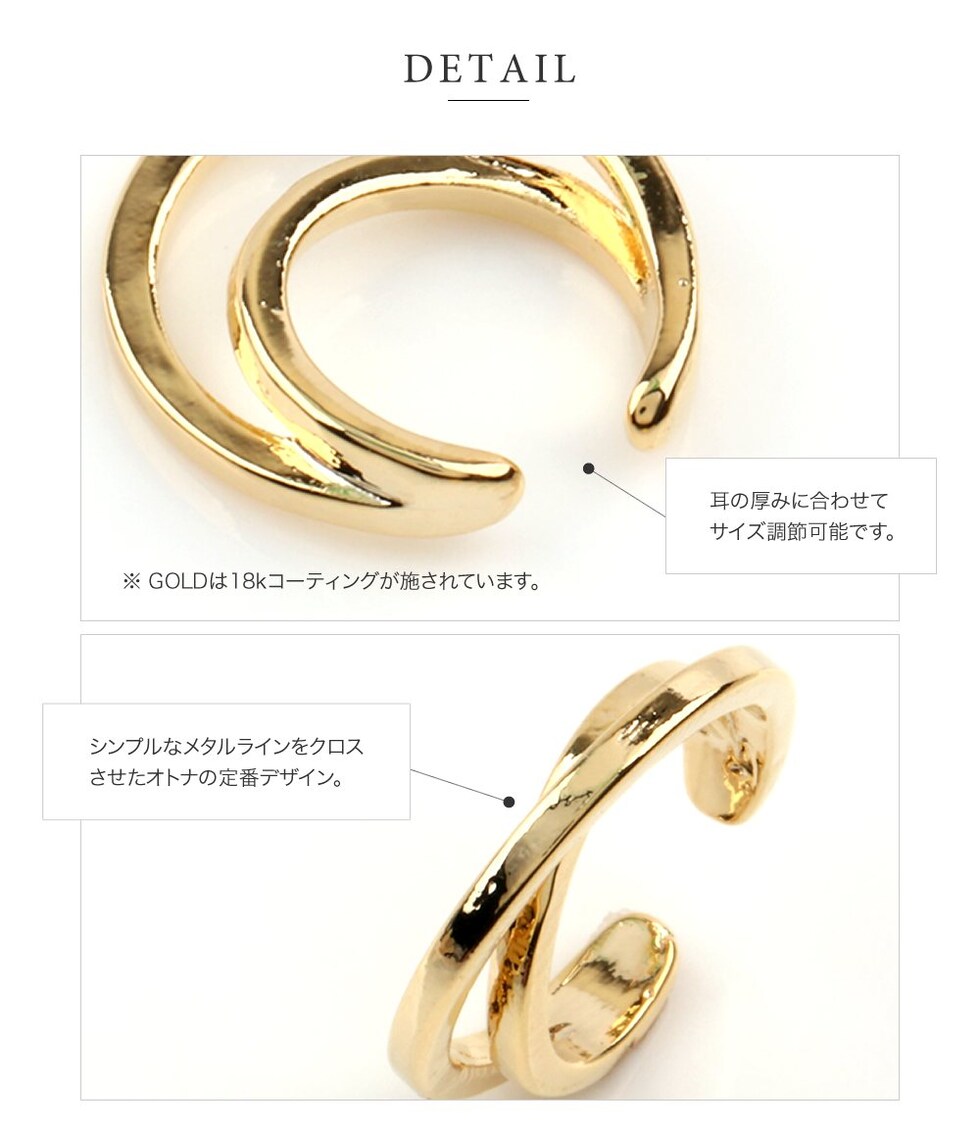 リングイヤーカフ。大小2本のメタルラインがクロスした