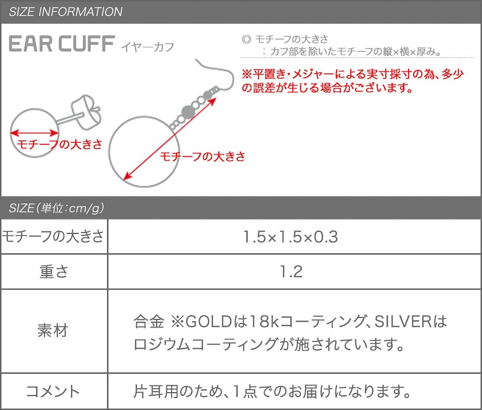イヤーカフ レディース イヤカフ 片耳用 メタル レイヤード風 cream dot ゆうパケット [ゴールド_フリーサイズ]
