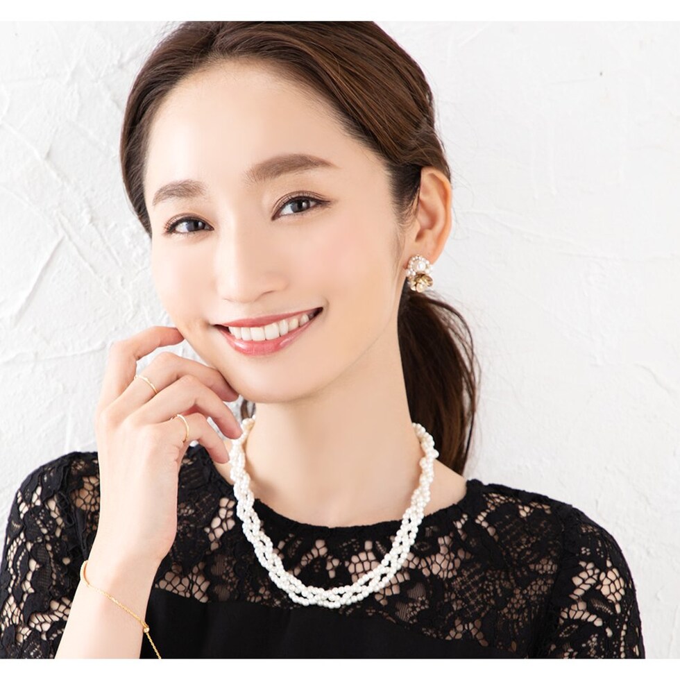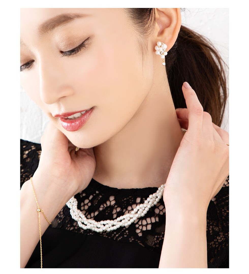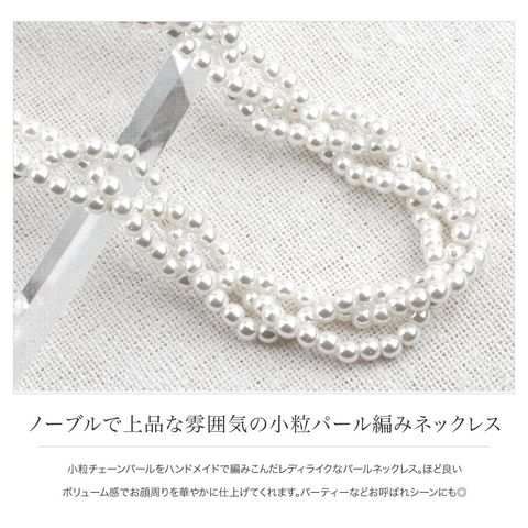 小粒チェーンパールをハンドメイドで編みこんだレディライクなパールネックレス。