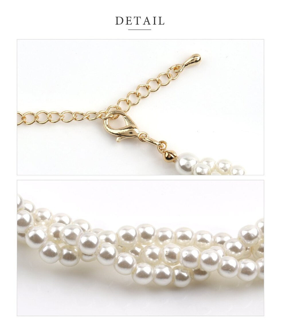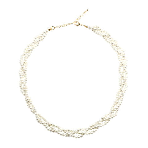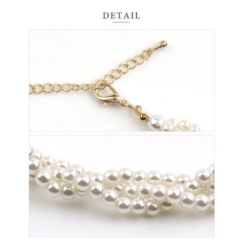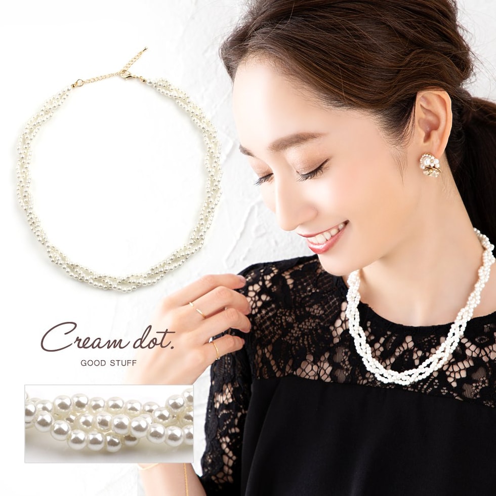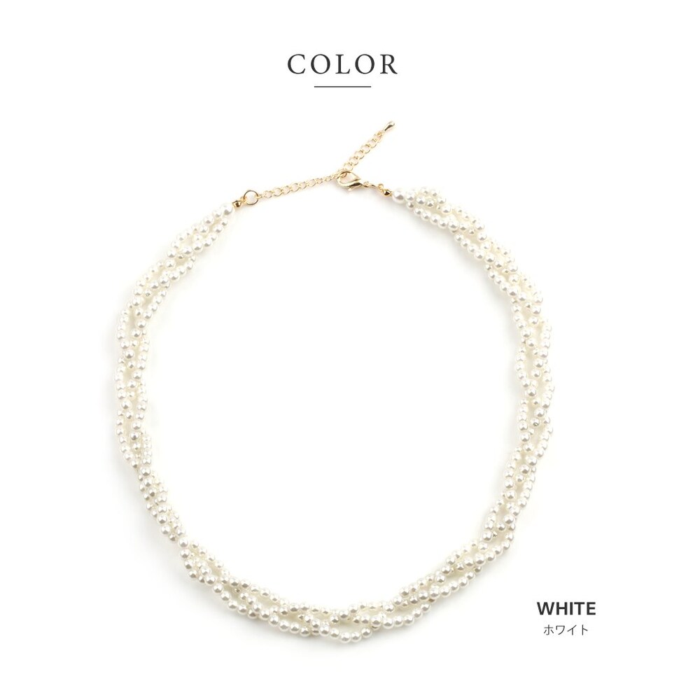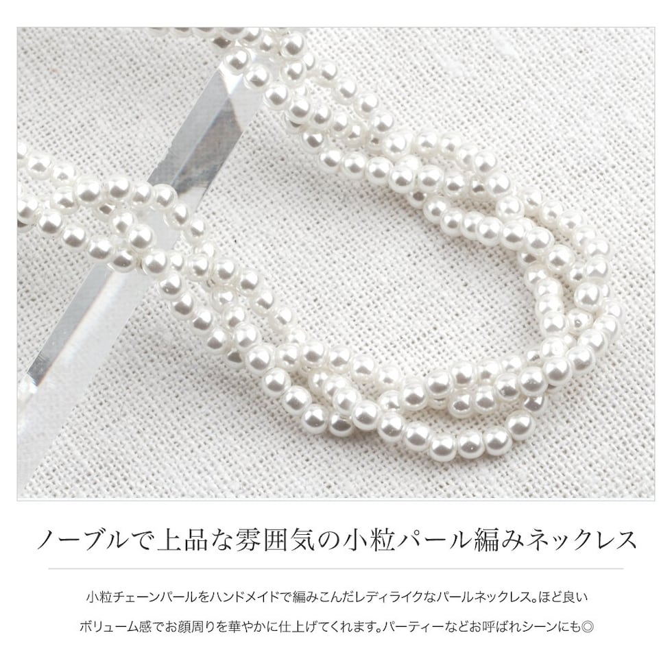 ネックレス レディース ショート チェーン パール 編み込み ハンドメイド ホワイト cream dot ゆうパケット [ホワイト_ワンサイズ]