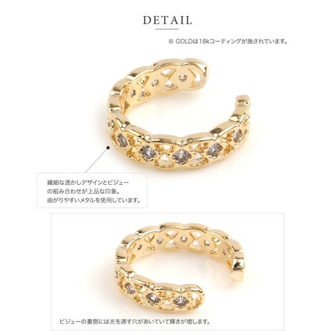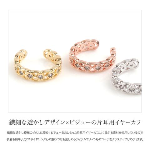 イヤーカフ レディース イヤーカフ イヤカフ 片耳用 ビジュー 透かしデザイン メタル cream dot ゆうパケット [シルバー_フリーサイズ]
