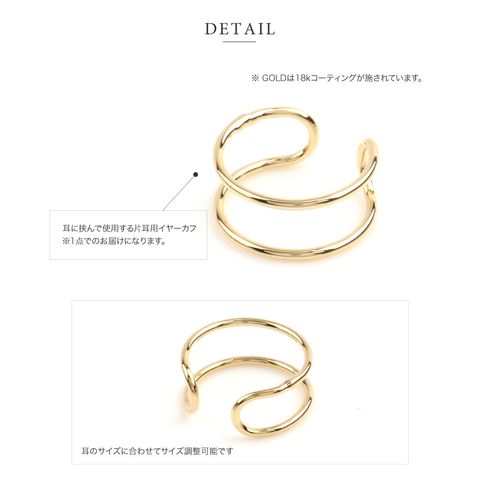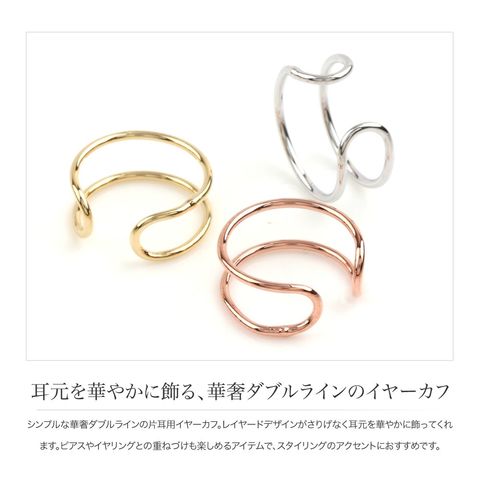 シンプルな華奢ダブルラインの片耳用イヤーカフ。