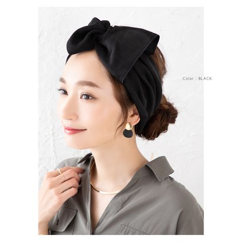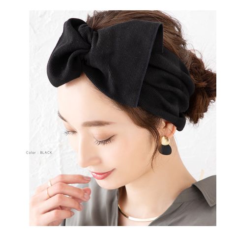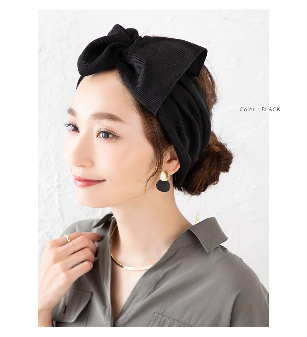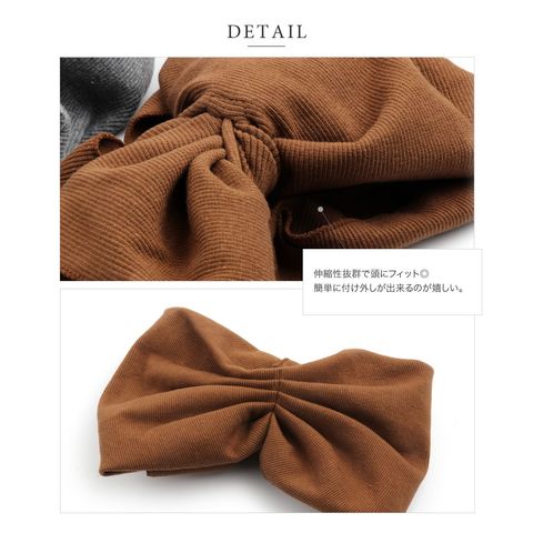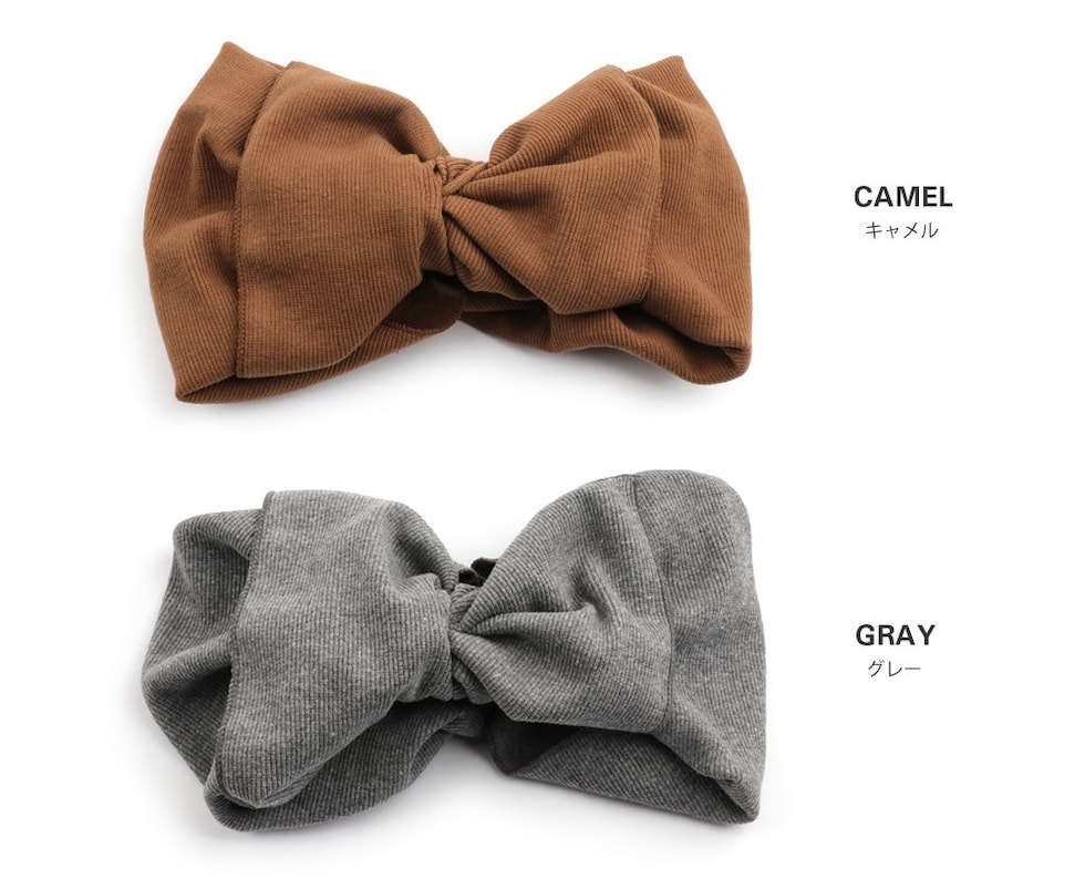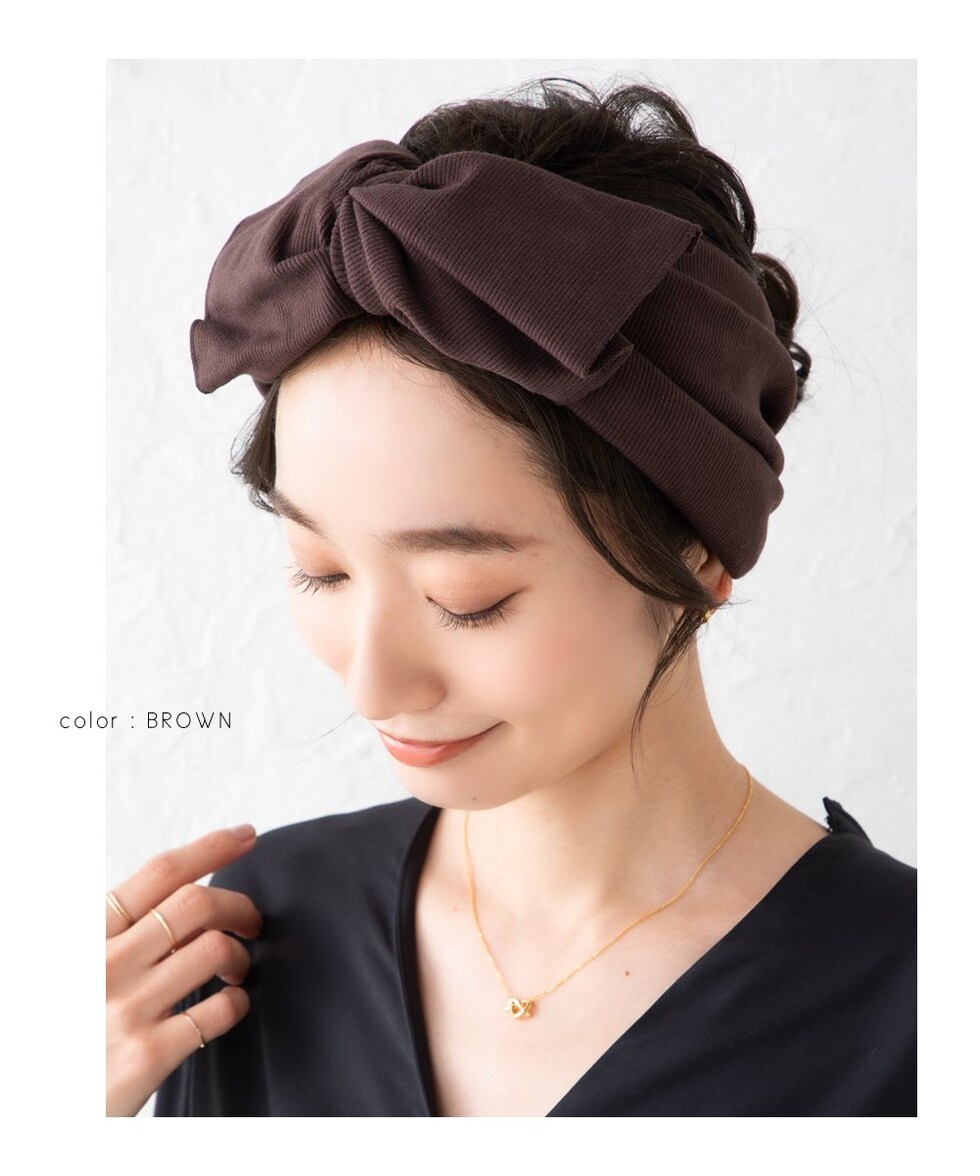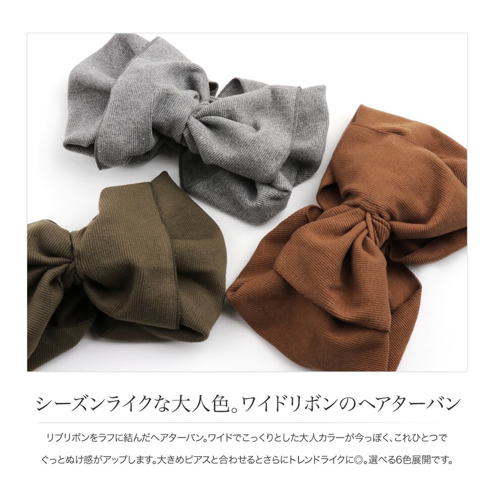 ヘアアクセサリー レディース ヘアターバン ヘアバンド ワイドリボン 幅広 リブ素材 グレー cream dot ゆうパケット [ブラウン_フリーサイズ]