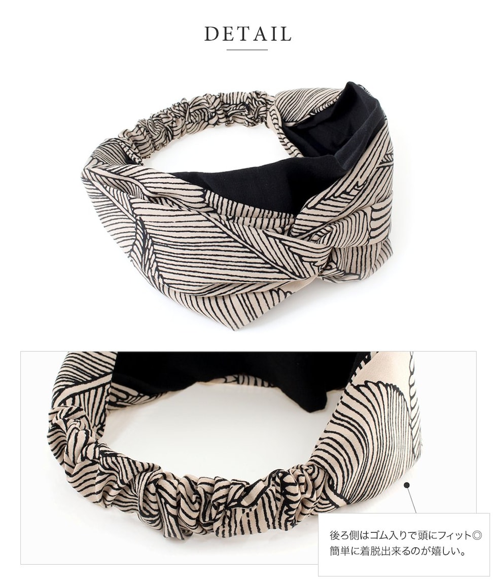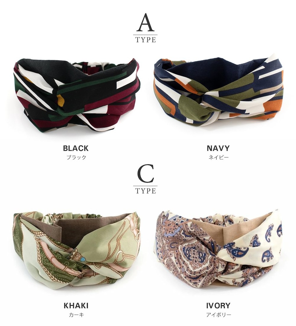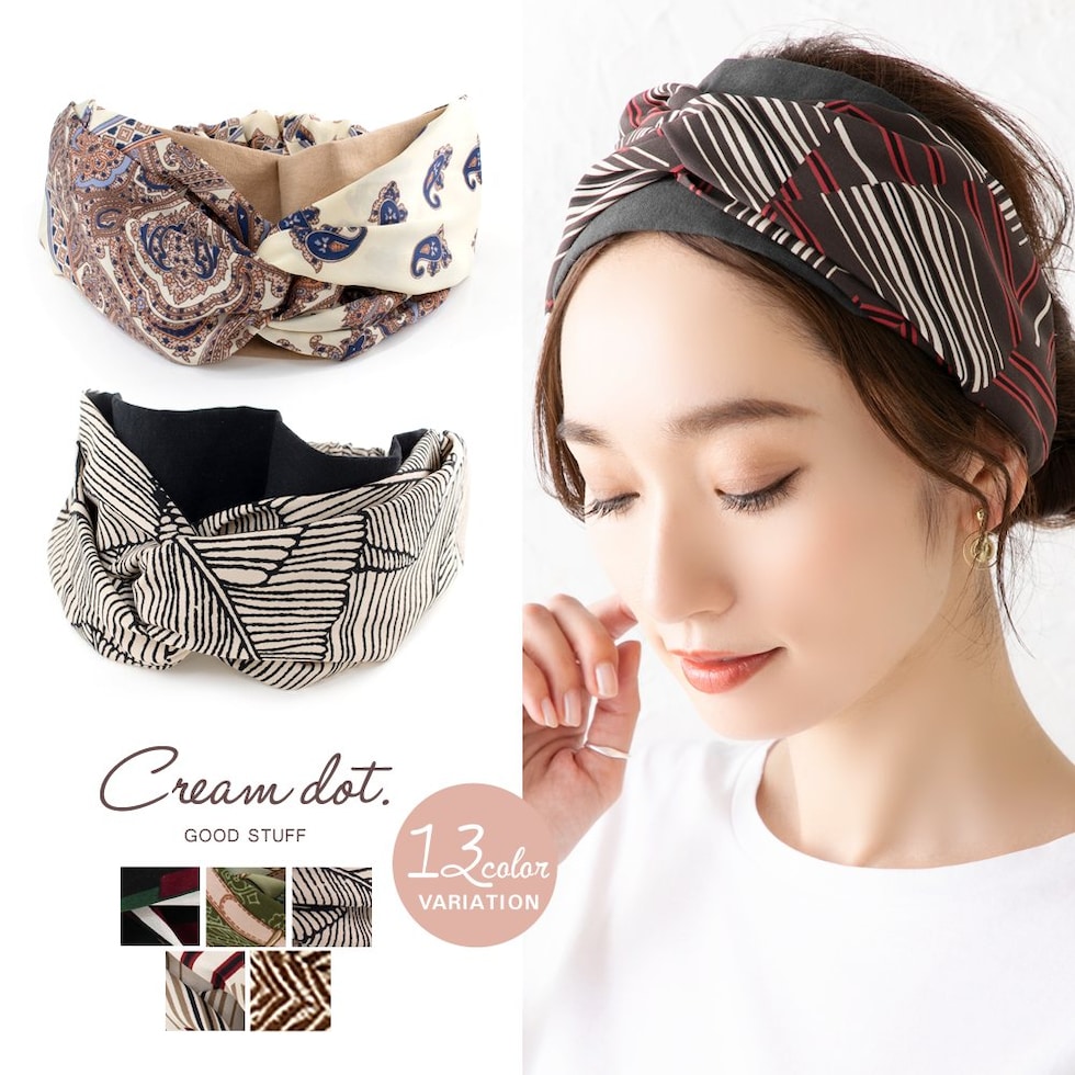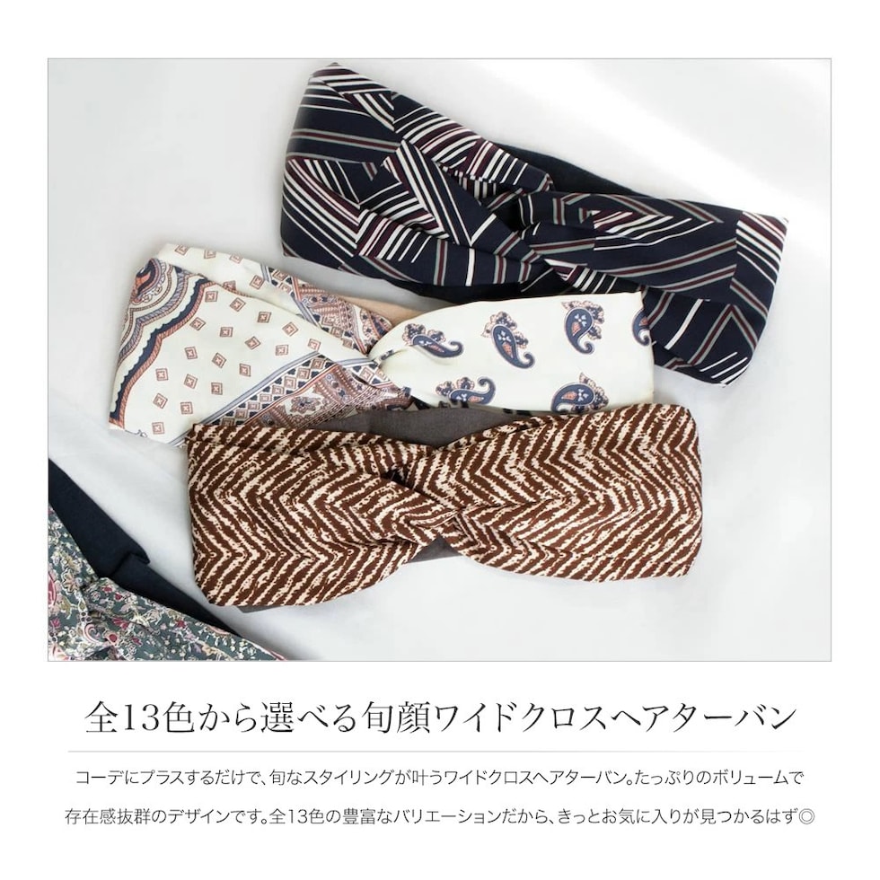 ヘアアクセサリー レディース 13色 ヘアターバン ヘアバンド 幅広 クロス ツイスト スカーフ マルチ 柄 cream dot ゆうパケット [D:ブラック_ワンサイズ]
