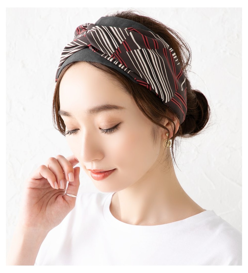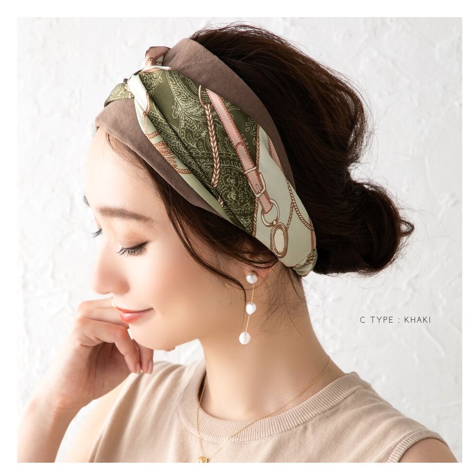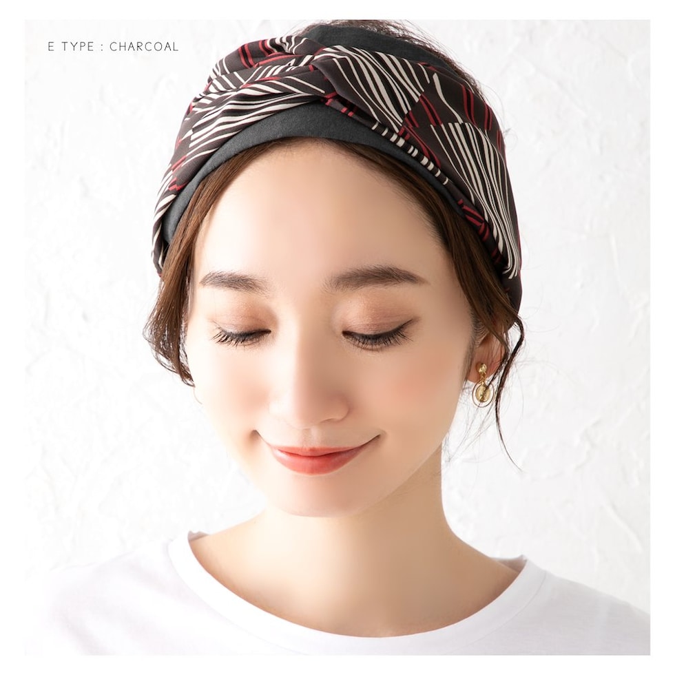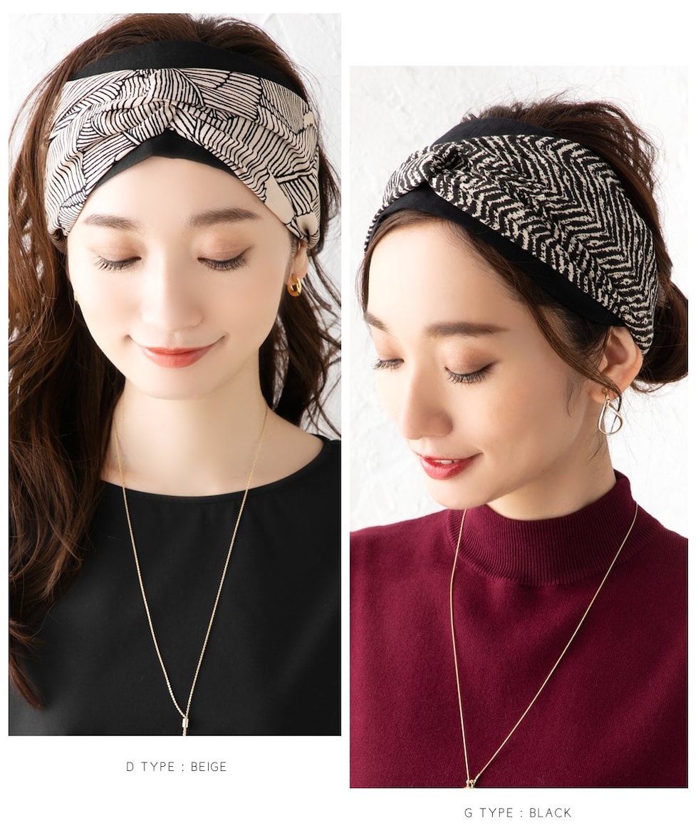 ヘアアクセサリー レディース 13色 ヘアターバン ヘアバンド 幅広 クロス ツイスト スカーフ マルチ 柄 cream dot ゆうパケット [D:ブラック_ワンサイズ]