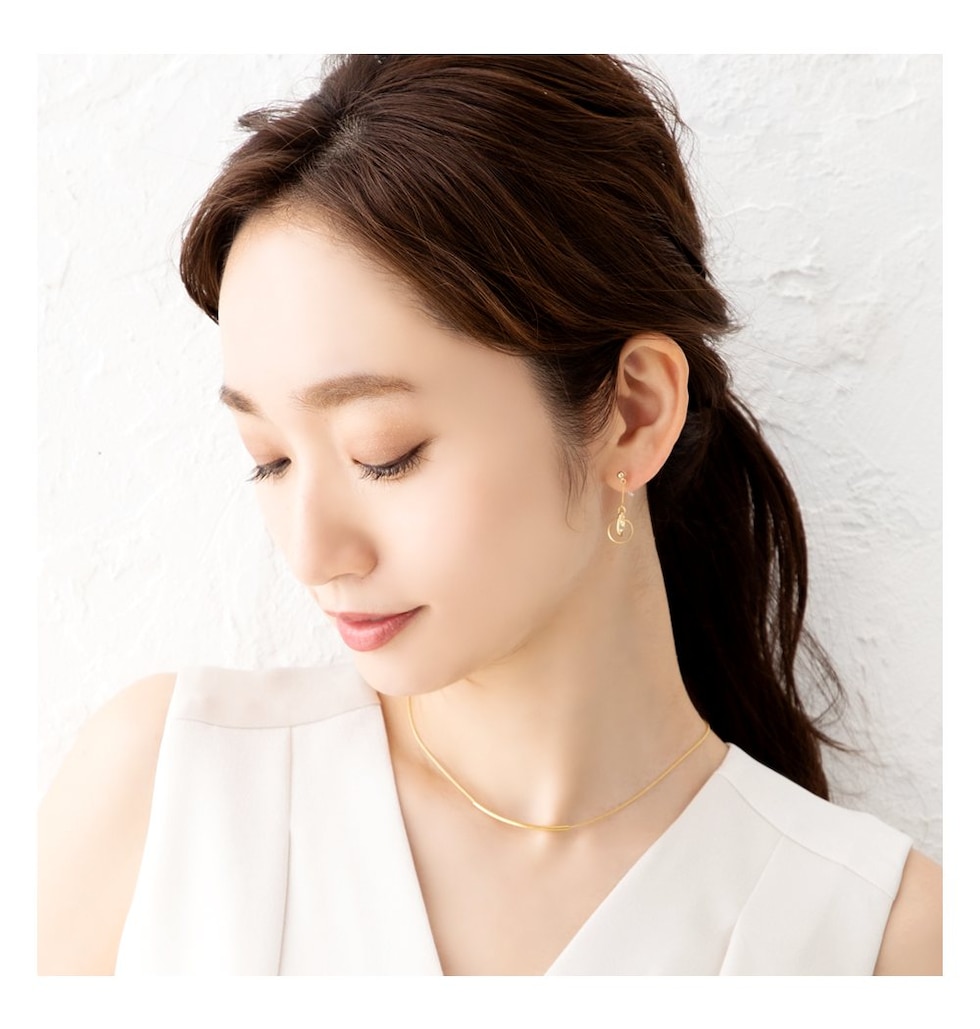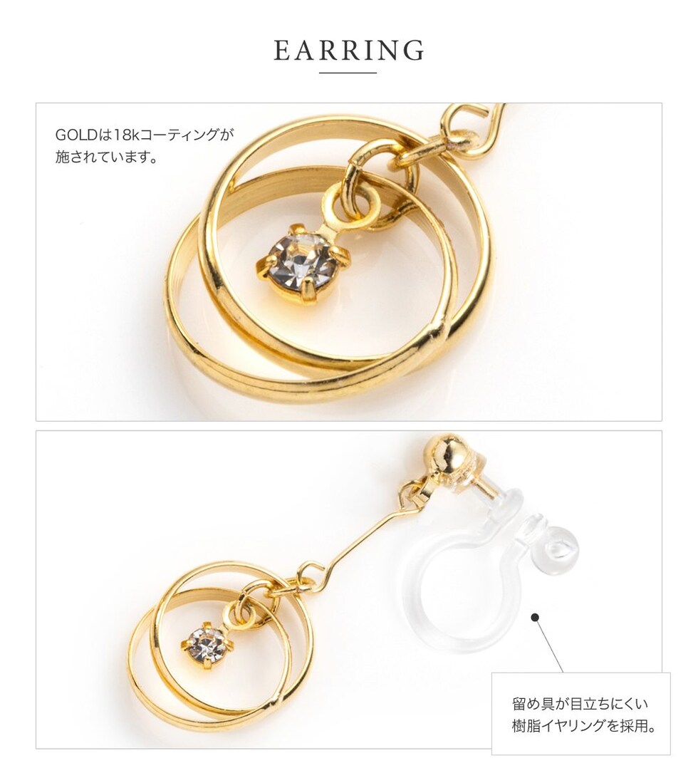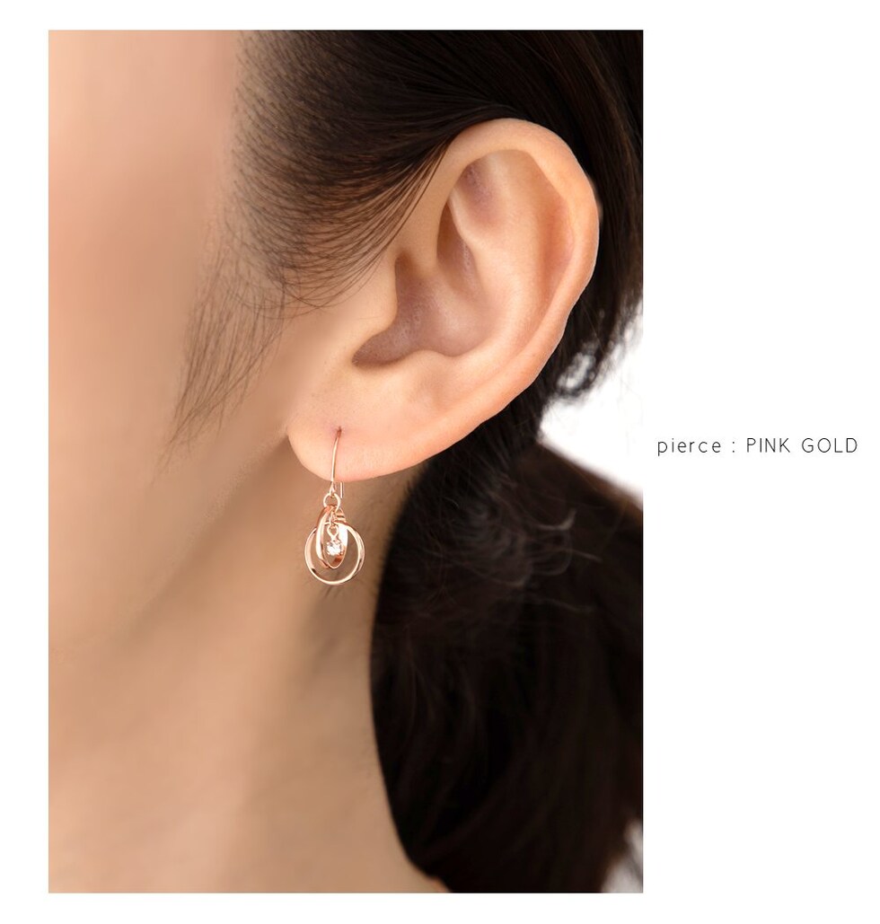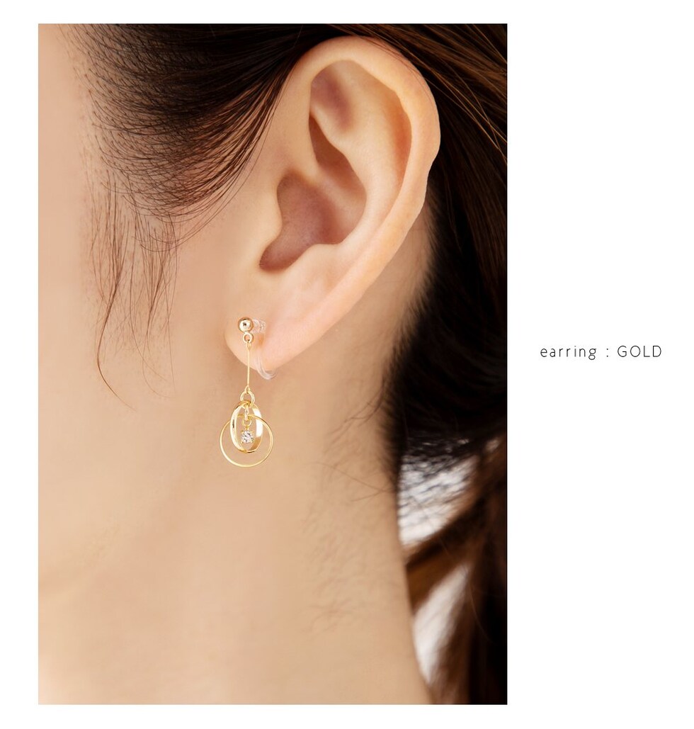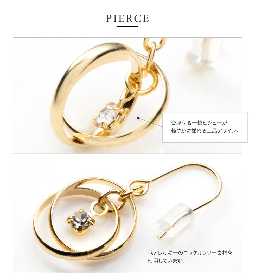交差する二つのリングと、中央に配した一粒ビジューがさりげない存在感を放つちょい揺れピアス/イヤリング。