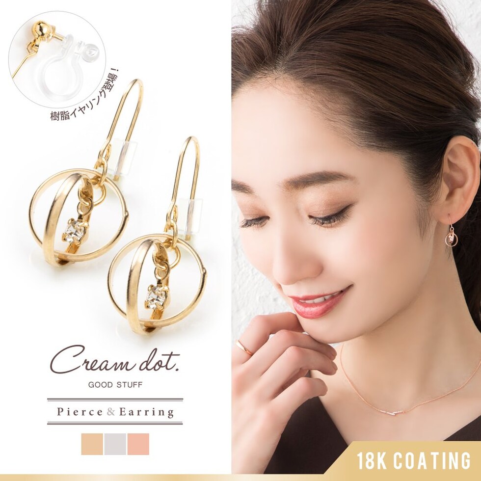 ピアス イヤリング 金属アレルギー ニッケルフリー レディース フック 揺れるビジュー cream dot ゆうパケット [シルバー_イヤリング]