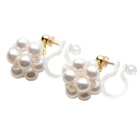小粒パールをぎゅっと編み上げたピアス/イヤリング。