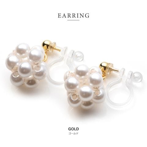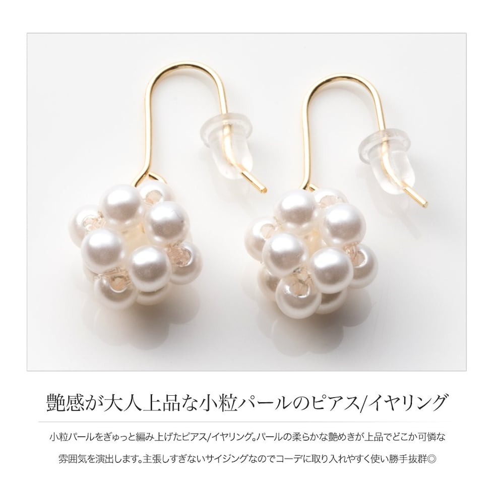 小粒パールをぎゅっと編み上げたピアス/イヤリング。