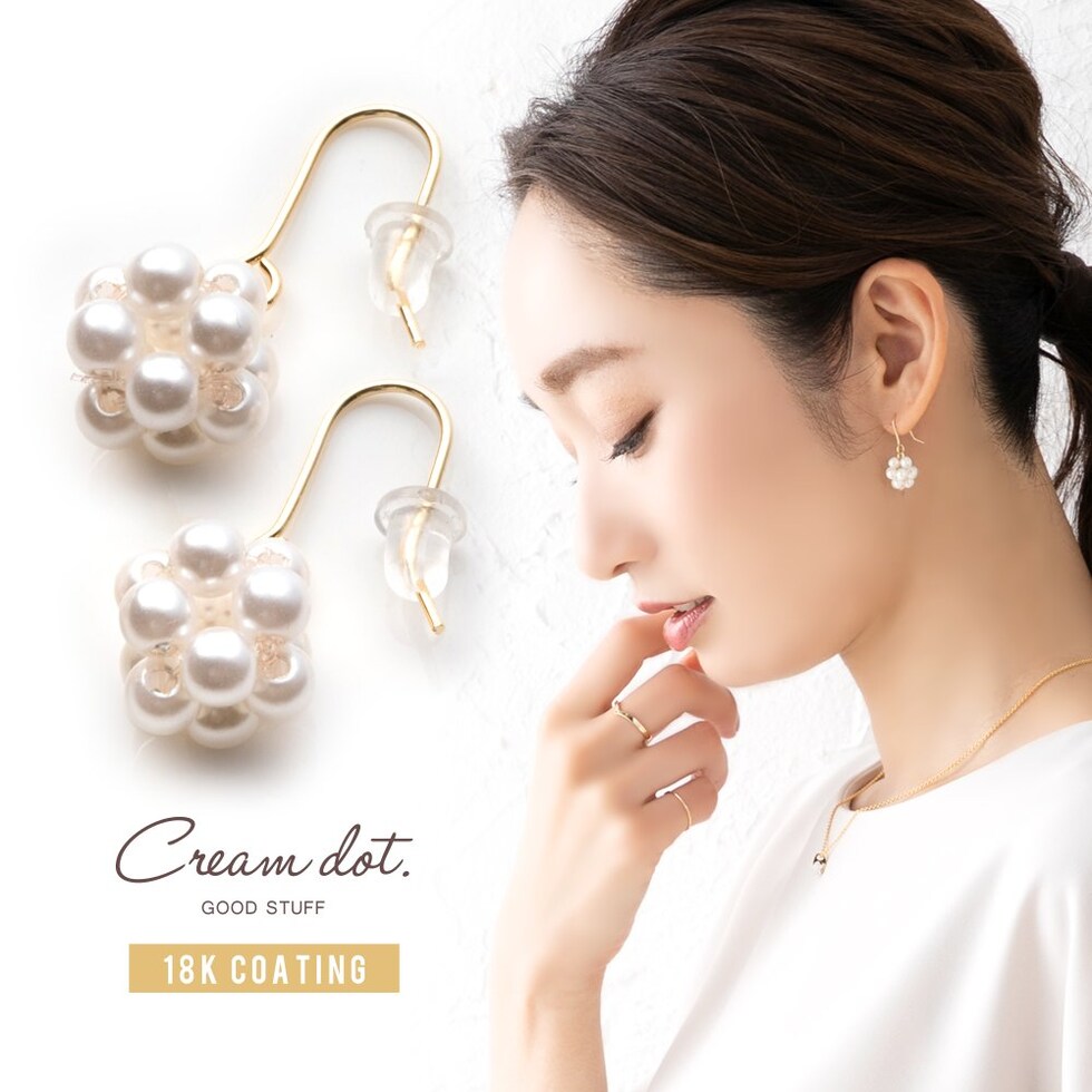 ピアス イヤリング レディース に見える フック 揺れる パール cream dot ゆうパケット [ゴールド_ピアス]