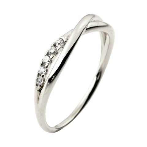 リングの中央をクロスさせ片側にラインストーンを配したアシンメトリーなデザインリング。