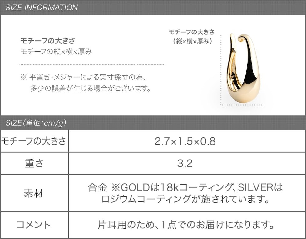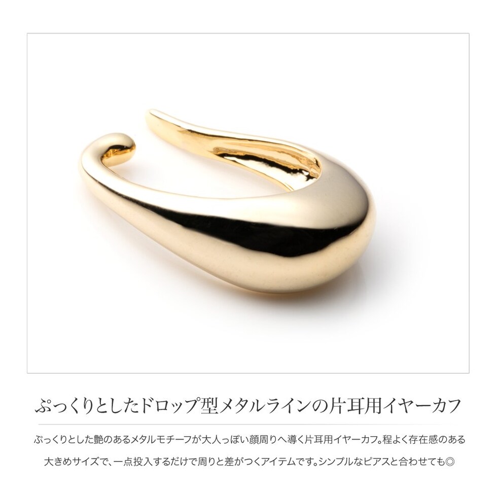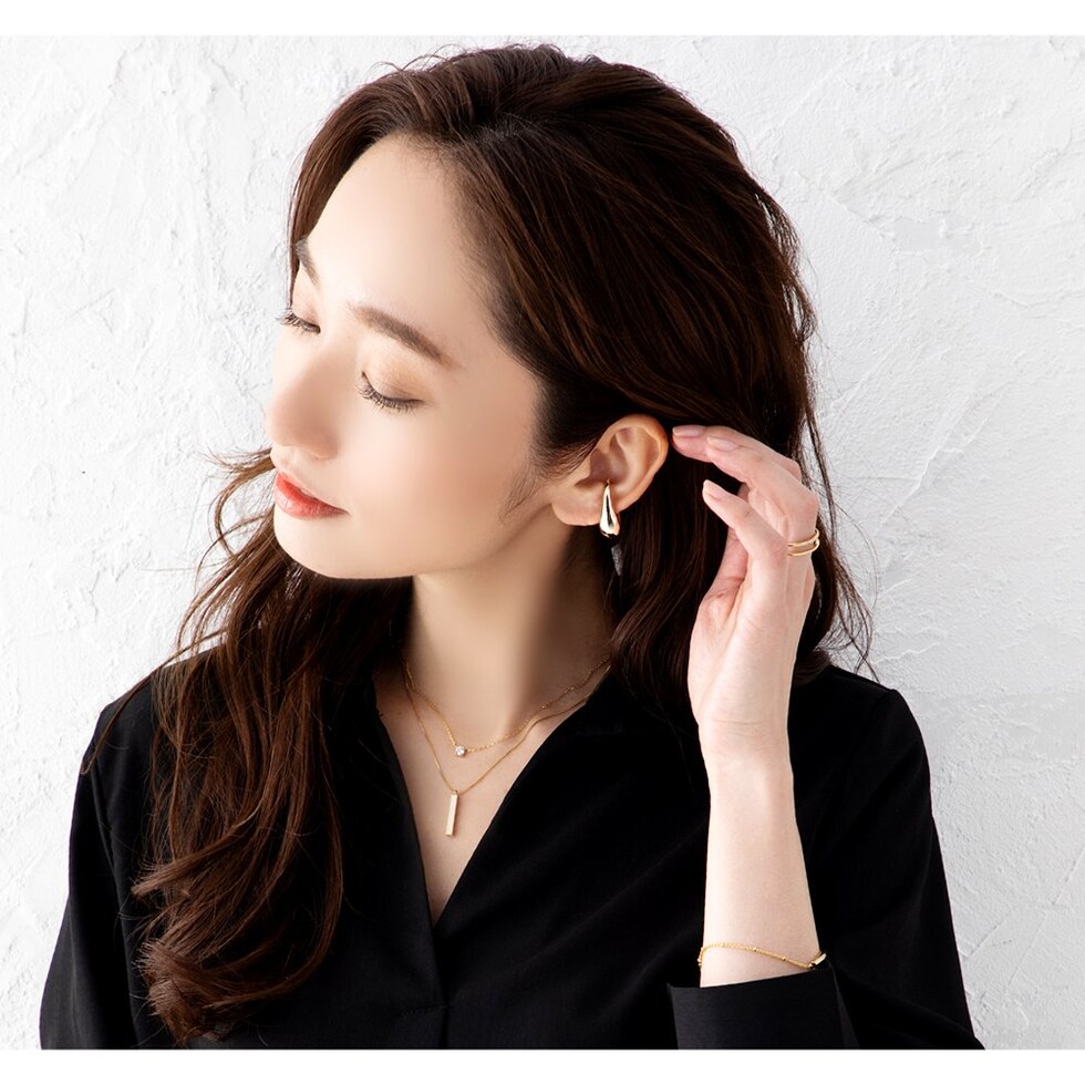 ぷっくりとした艶のあるメタルモチーフが大人っぽい顔周りへ導く片耳用イヤーカフ。