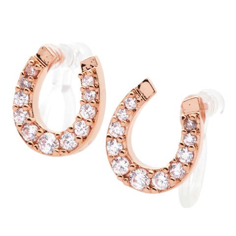 幸運をもたらすと言われるホースシュー(馬蹄)モチーフにビジューをあしらった4タイプのピアス/イヤリング。
