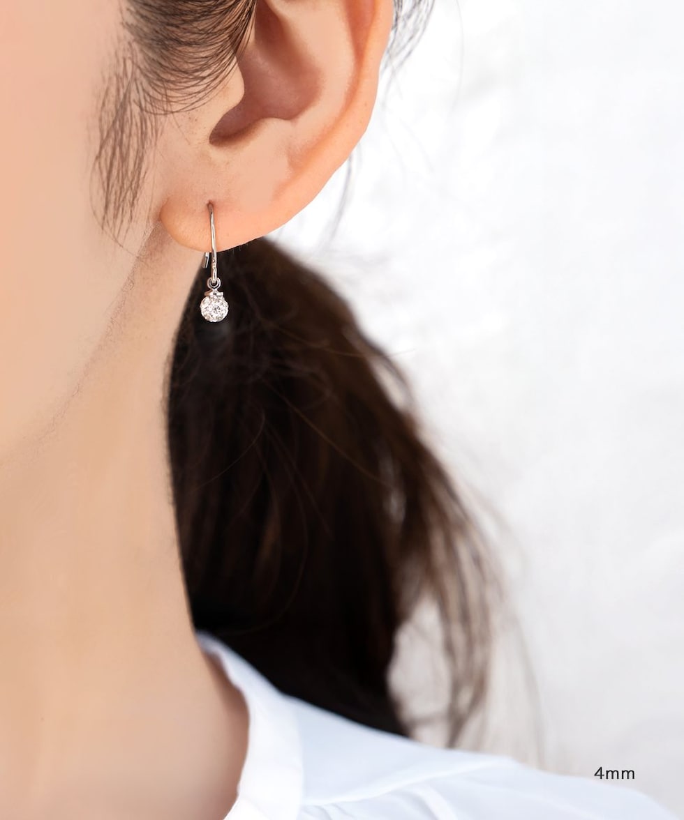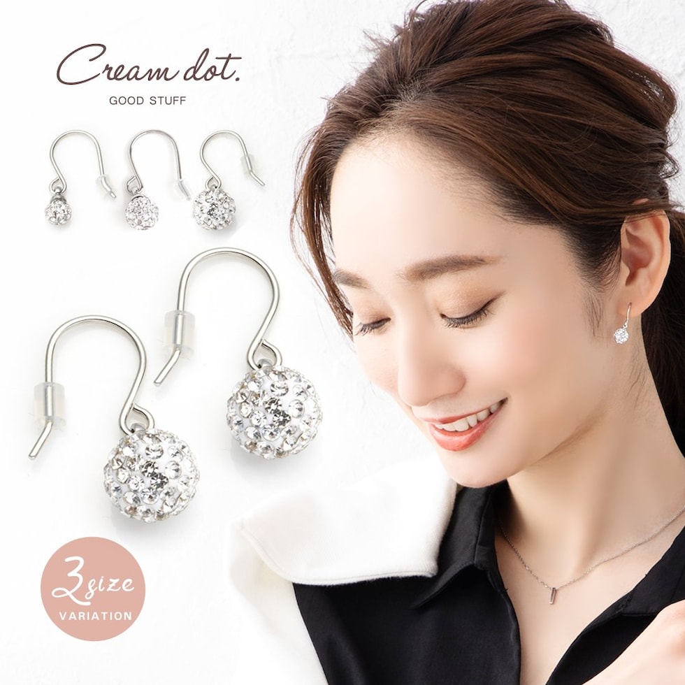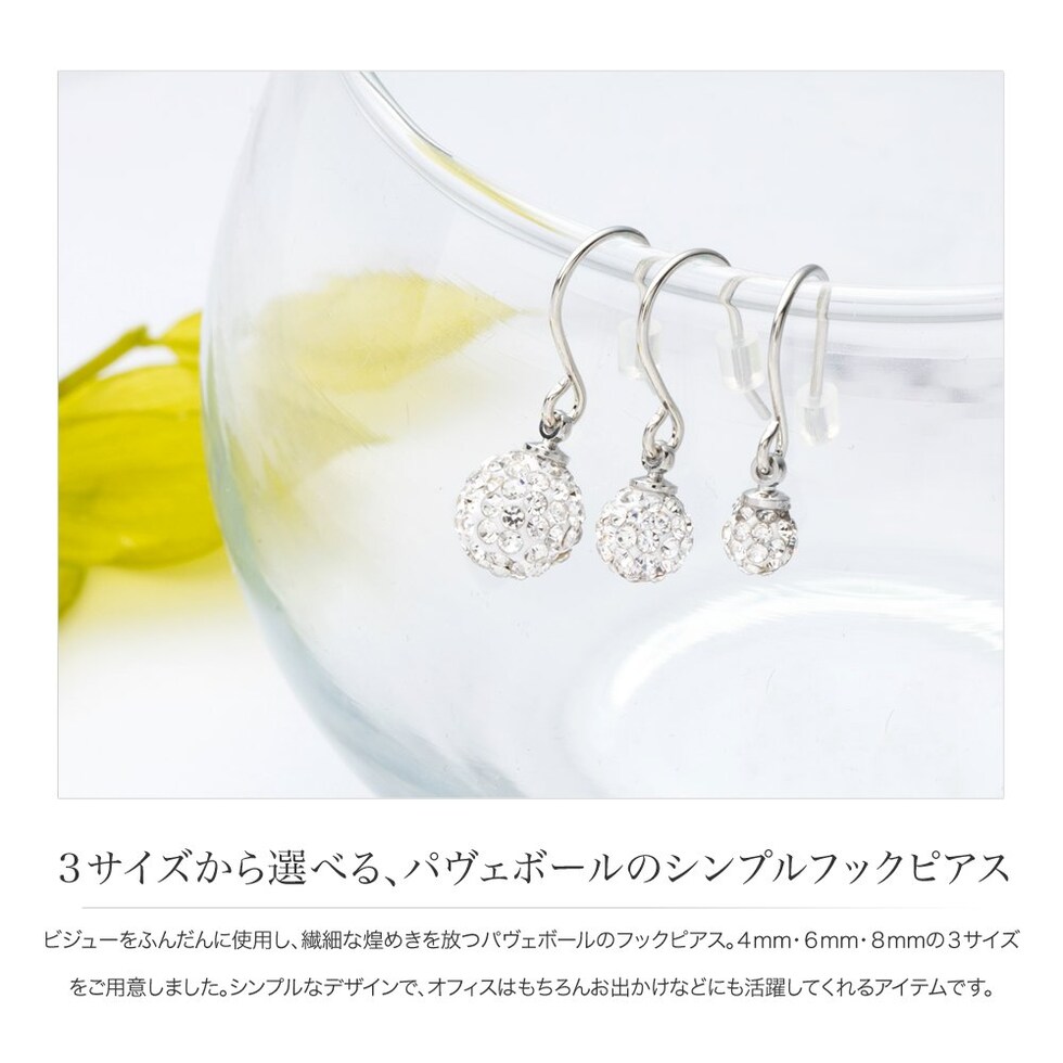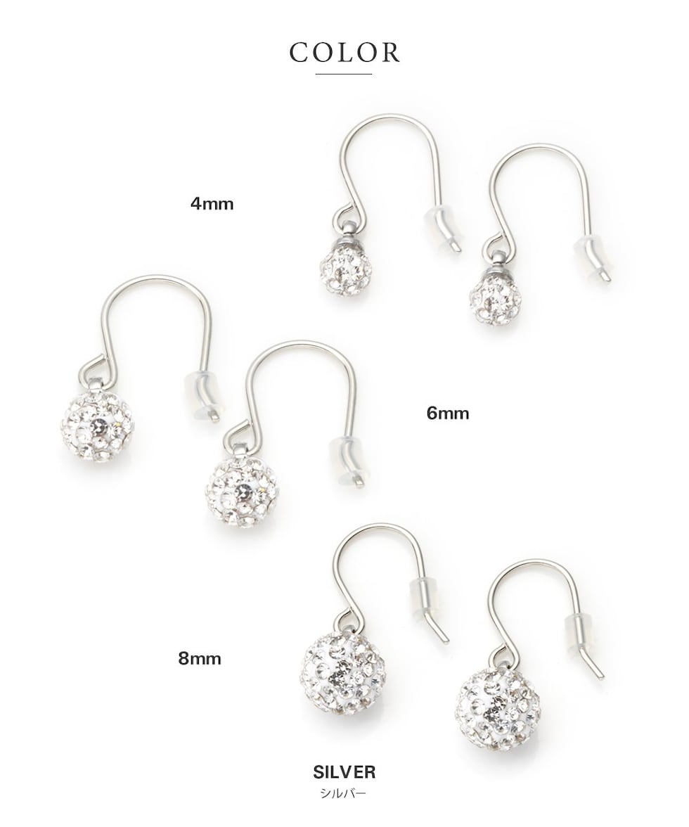 ピアス レディース フック 揺れる パヴェボール ビジュー 3サイズ 4mm 6mm 8mm cream dot ゆうパケット [シルバー_4mm]