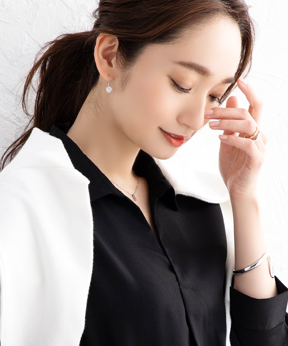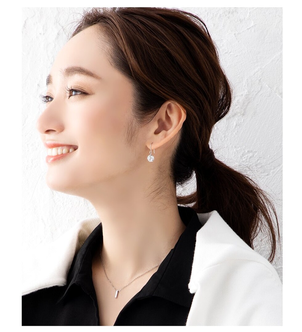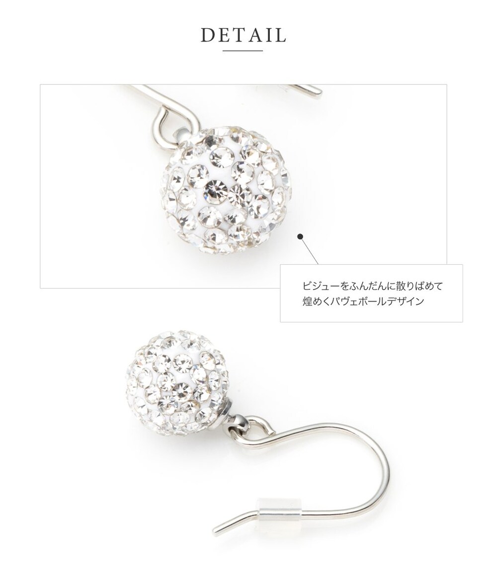 ピアス レディース フック 揺れる パヴェボール ビジュー 3サイズ 4mm 6mm 8mm cream dot ゆうパケット [シルバー_4mm]