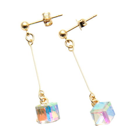 角度によって色々な表情に変化するスクエアガラスを飾ったイヤリング/ピアス。