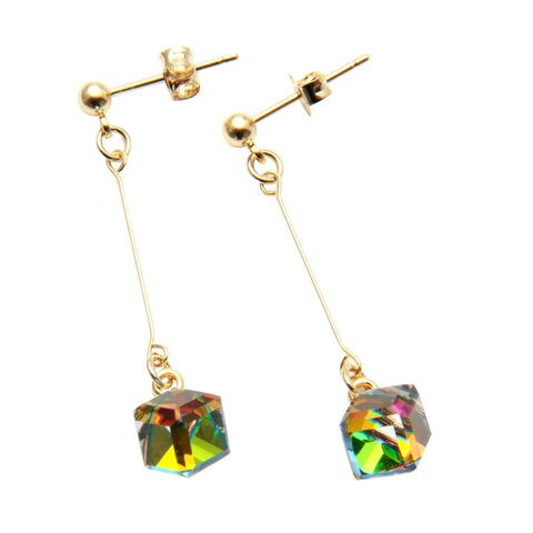 角度によって色々な表情に変化するスクエアガラスを飾ったイヤリング/ピアス。